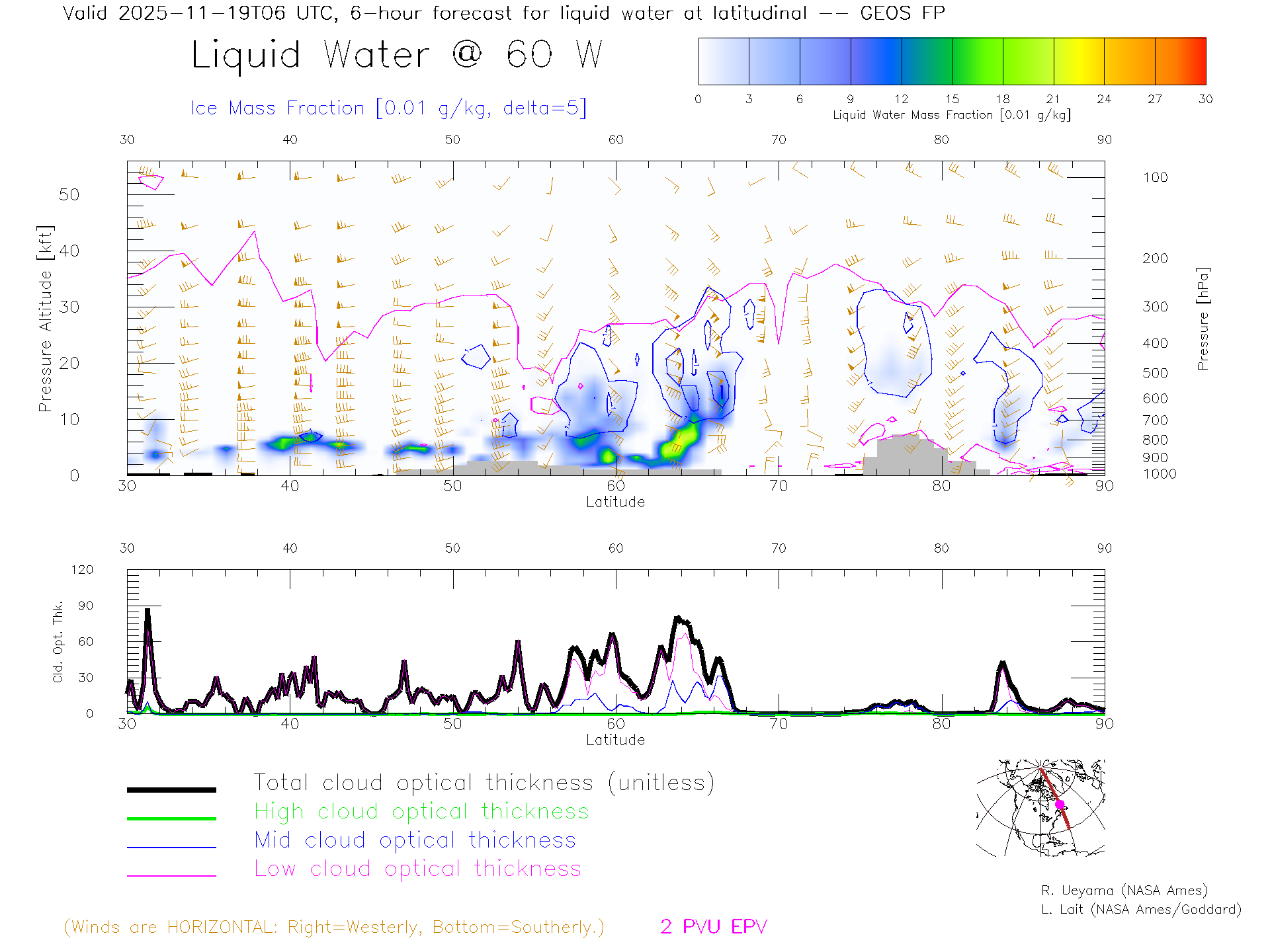 GEOS Forecast Cloud Water Content X-Section (60 W)