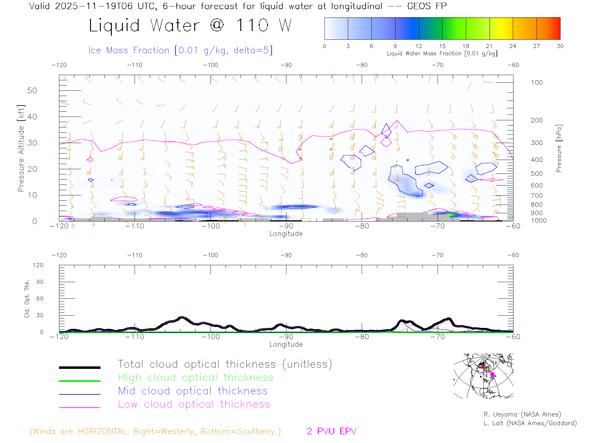 GEOS Forecast Cloud Water Content X-Section (70 N)
