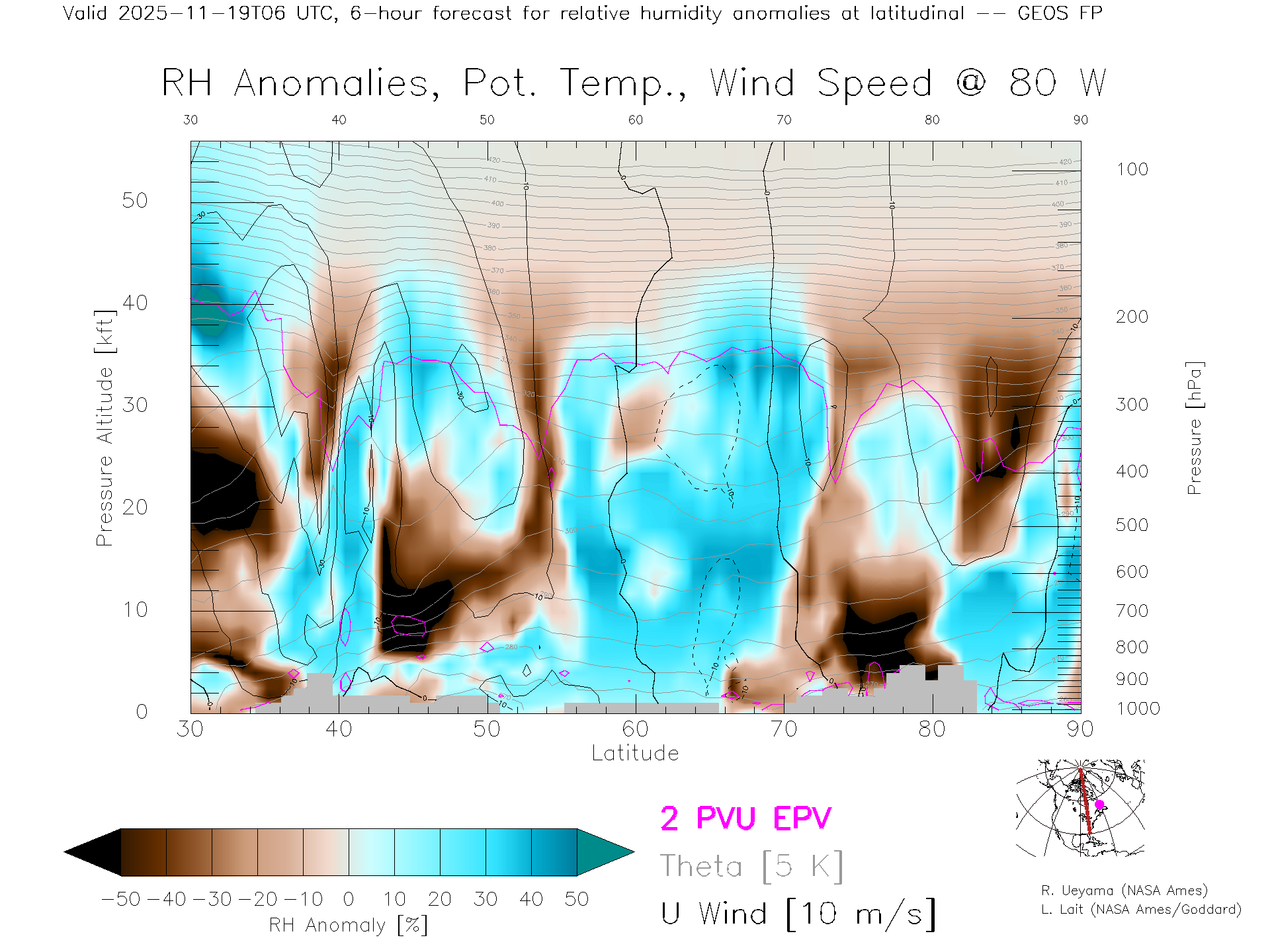 GEOS Forecast Rel. Hum. X-Section (80 W)