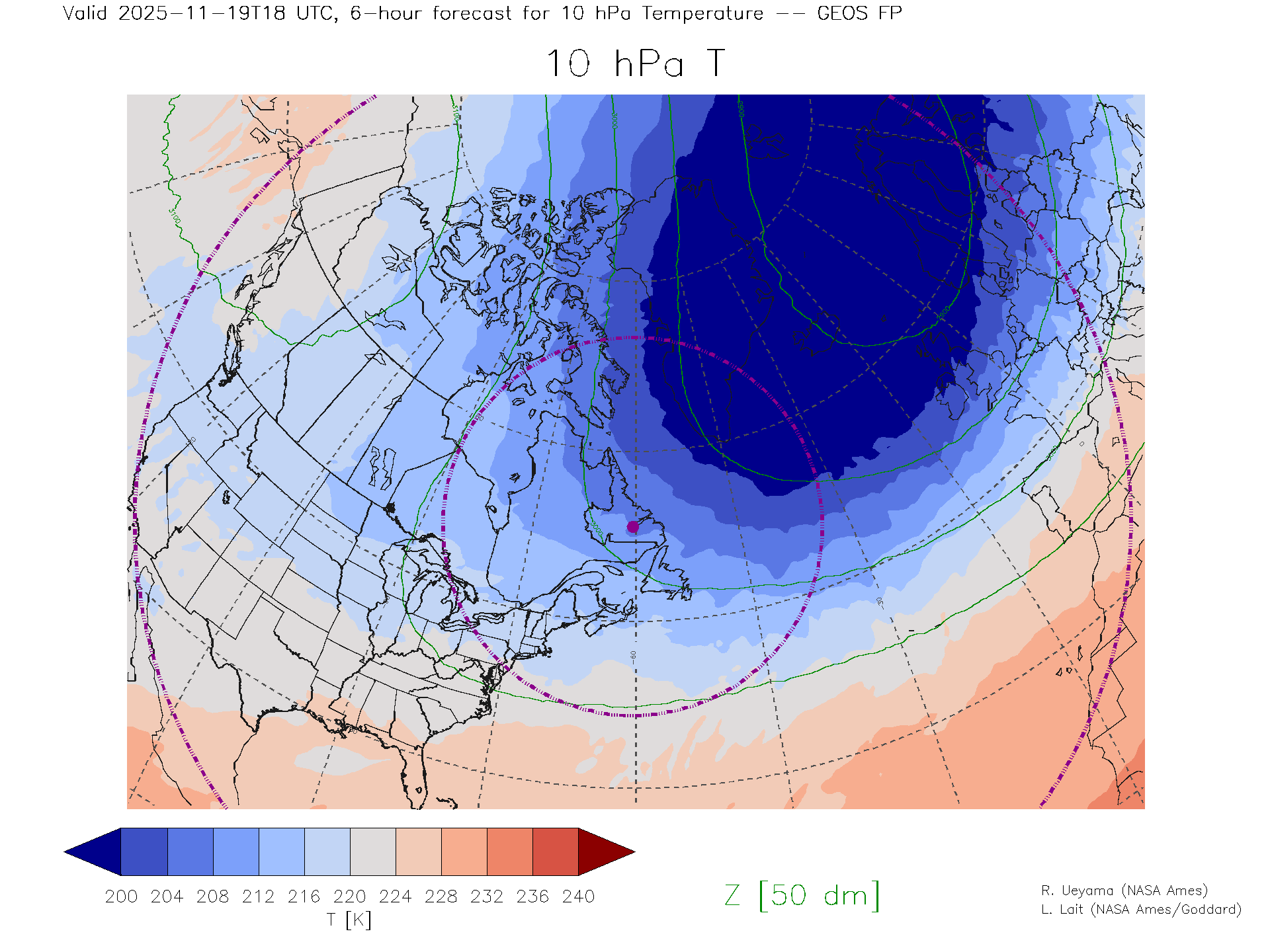 GEOS Forecast 10 hPa Temp.