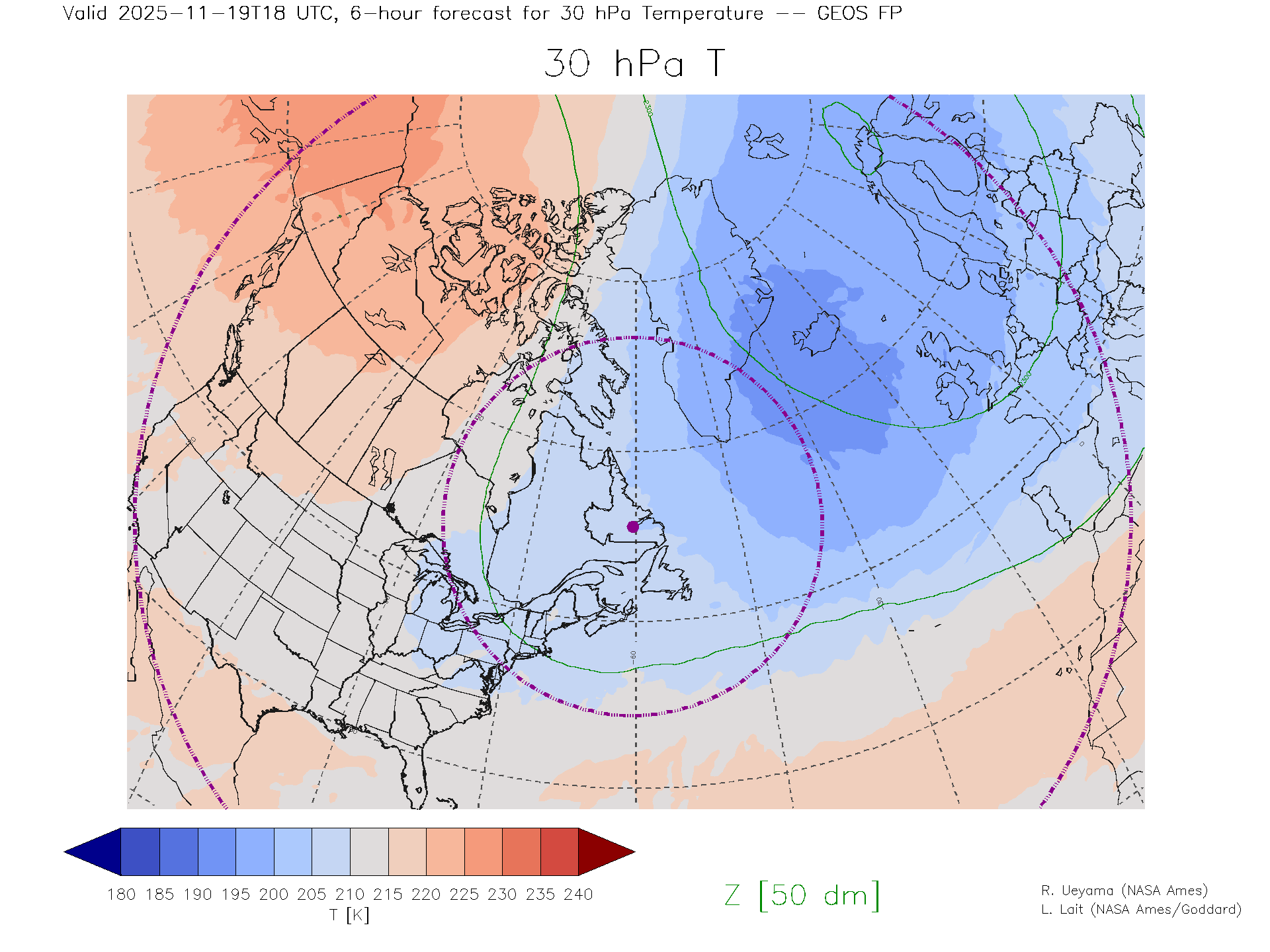 GEOS Forecast 30 hPa Temp.