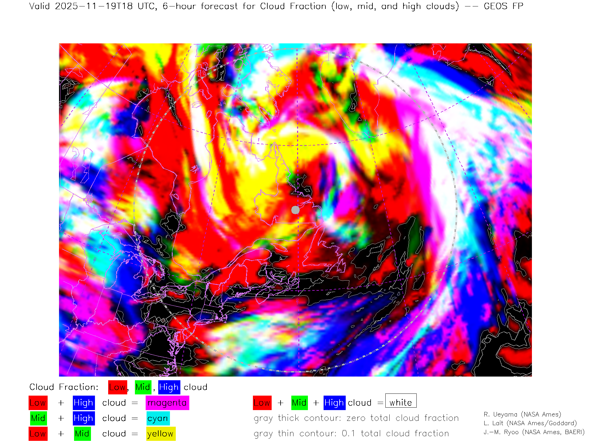 GEOS Forecast Low-, Mid- and High-level Cloud Fraction