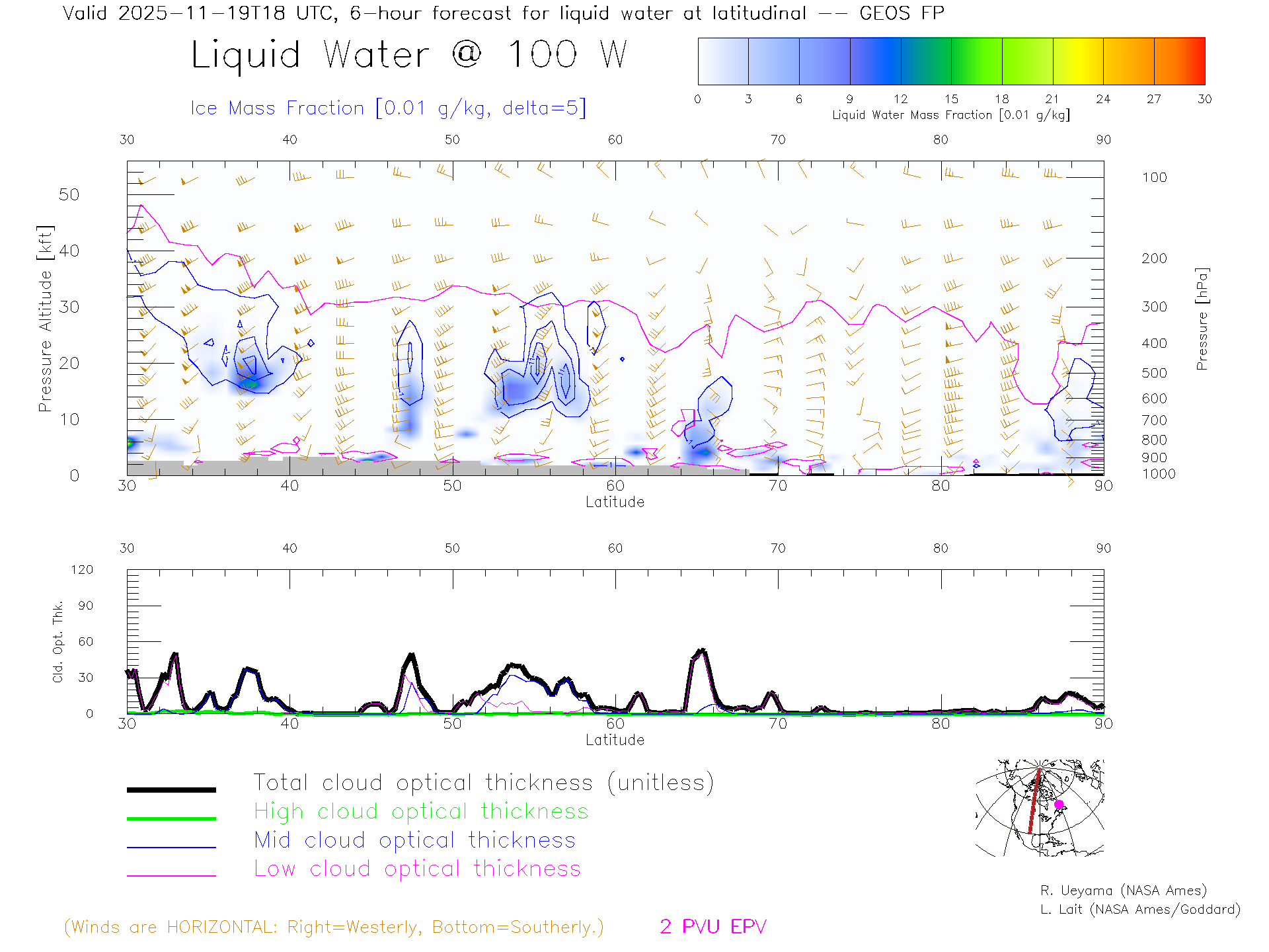 GEOS Forecast Cloud Water Content X-Section (100 W)