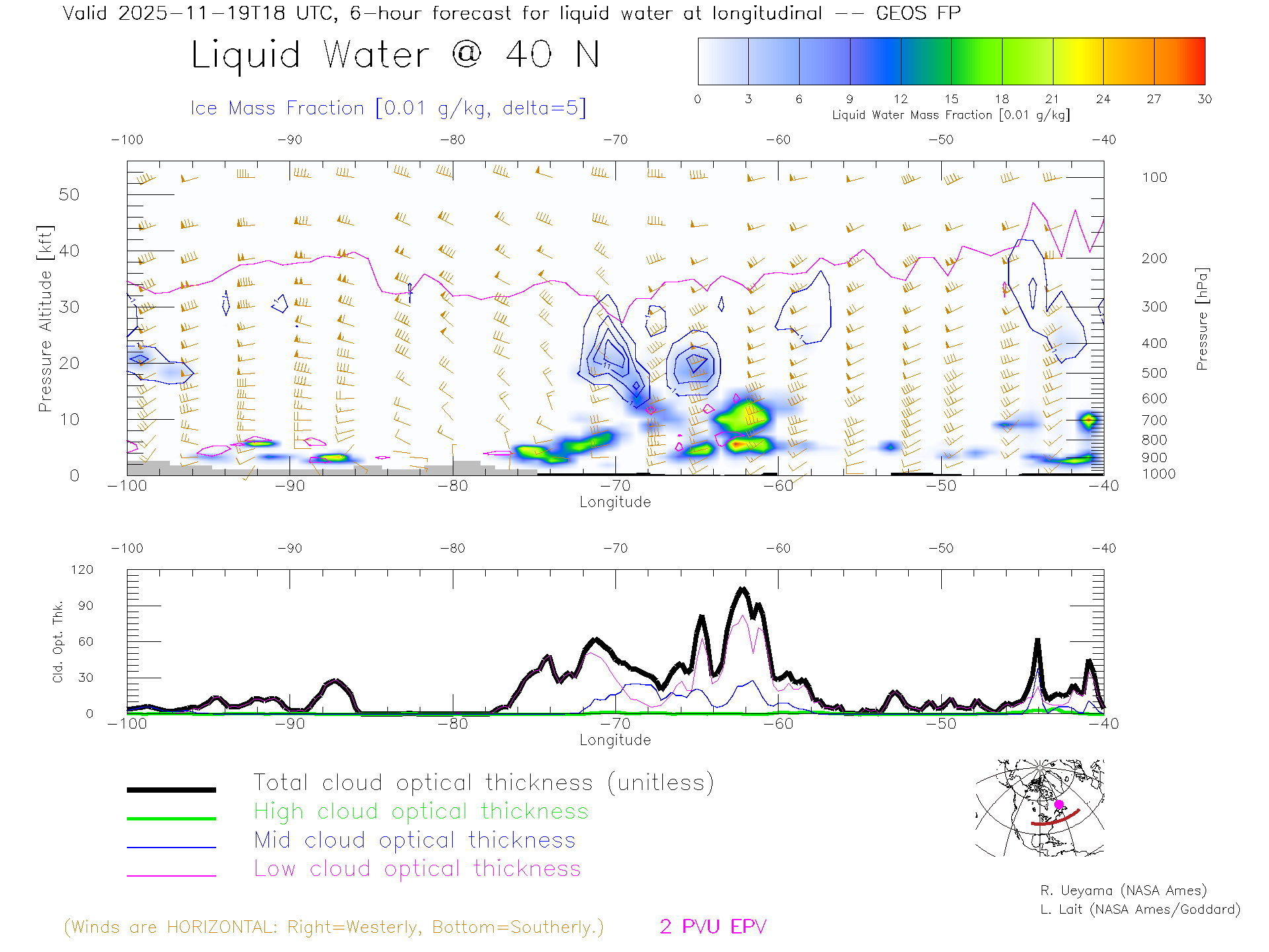 GEOS Forecast Cloud Water Content X-Section (40 N)