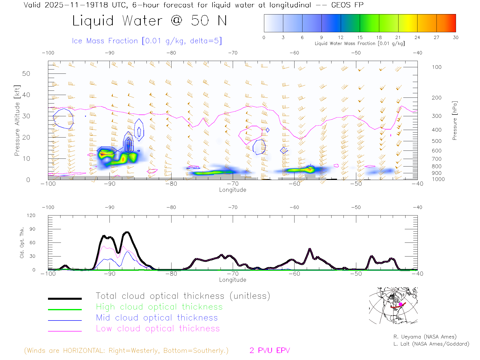 GEOS Forecast Cloud Water Content X-Section (50 N)