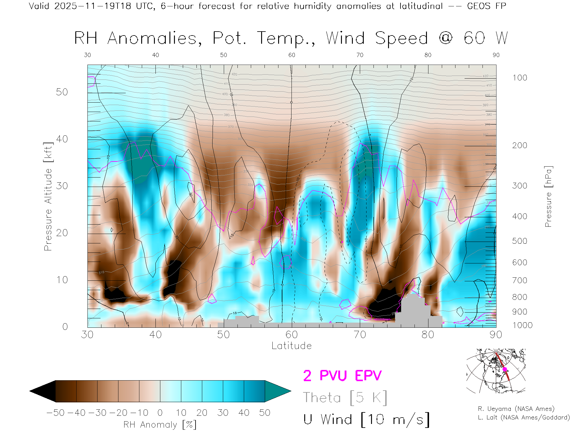 GEOS Forecast Rel. Hum. X-Section (60 W)