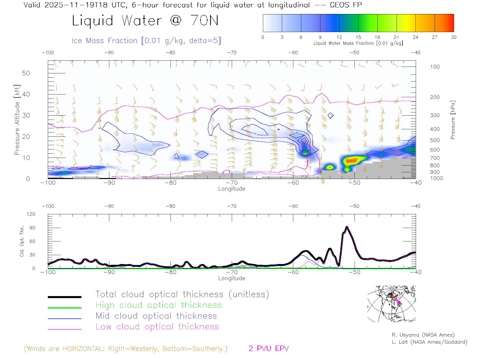 GEOS Forecast Cloud Water Content X-Section (70 N)