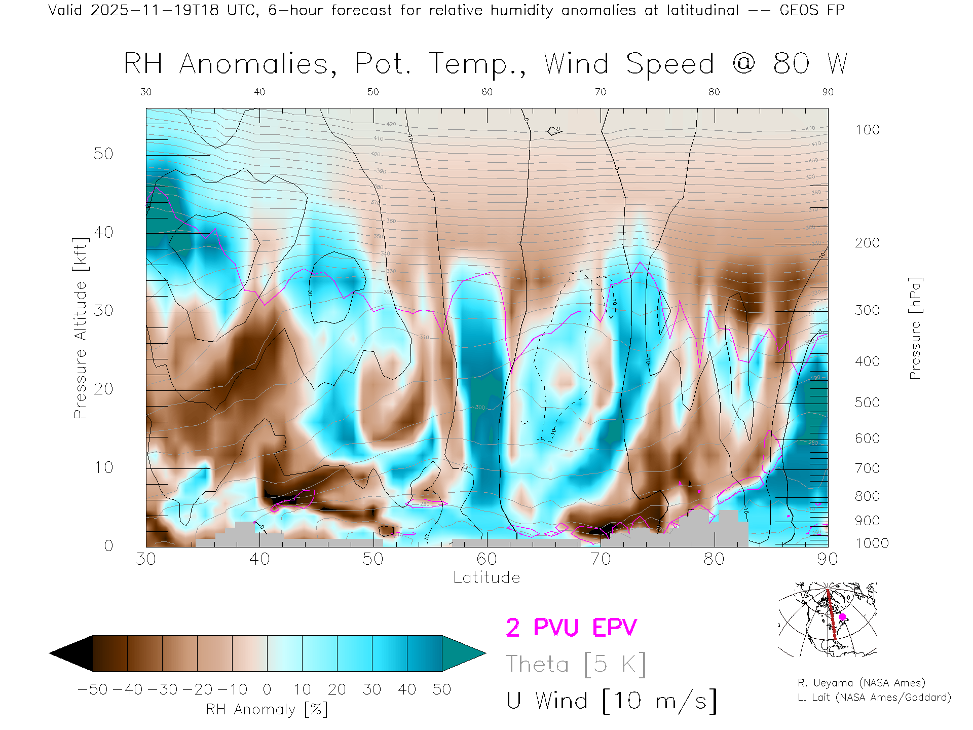 GEOS Forecast Rel. Hum. X-Section (80 W)