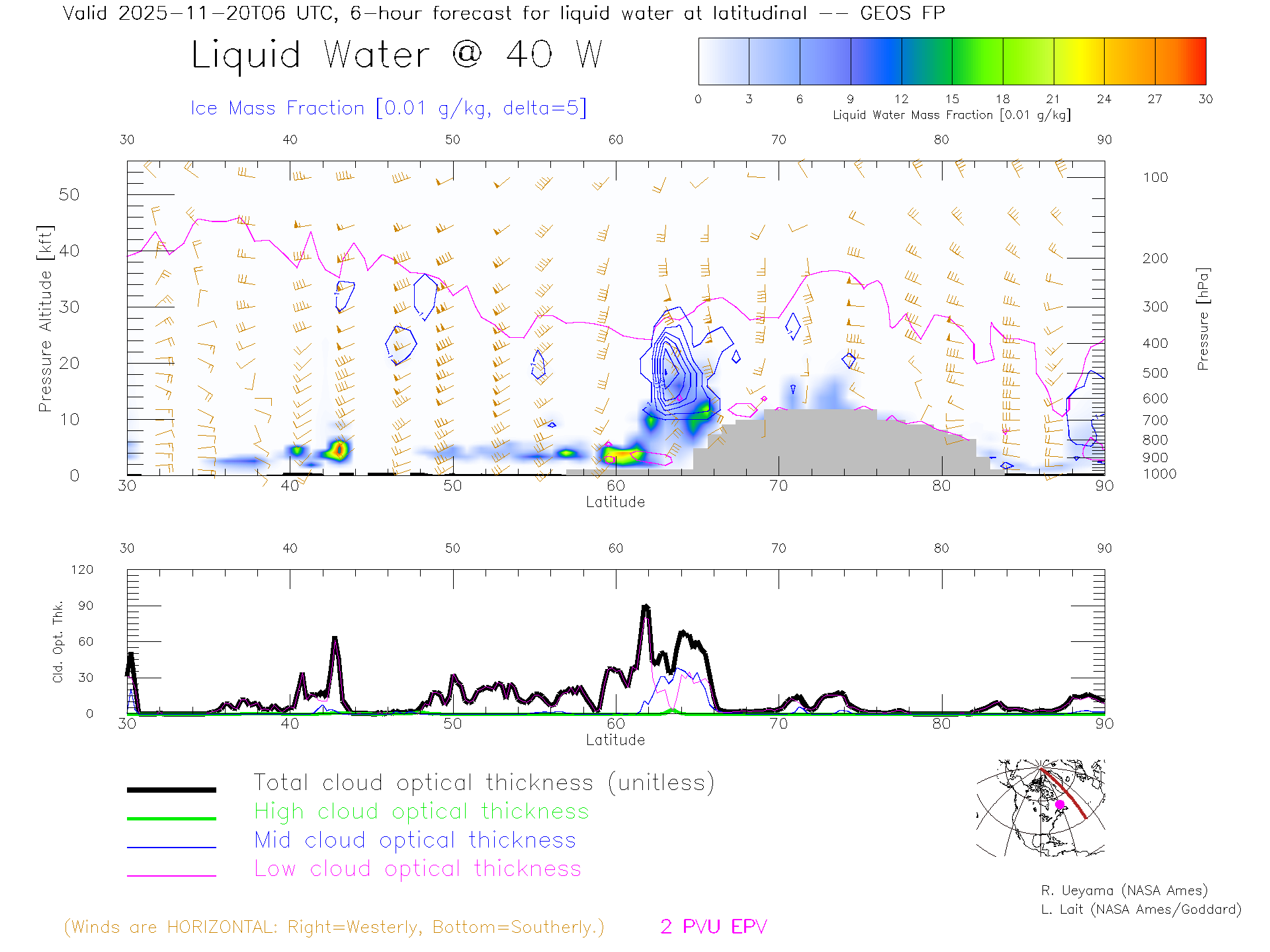 GEOS Forecast Cloud Water Content X-Section (40 W)