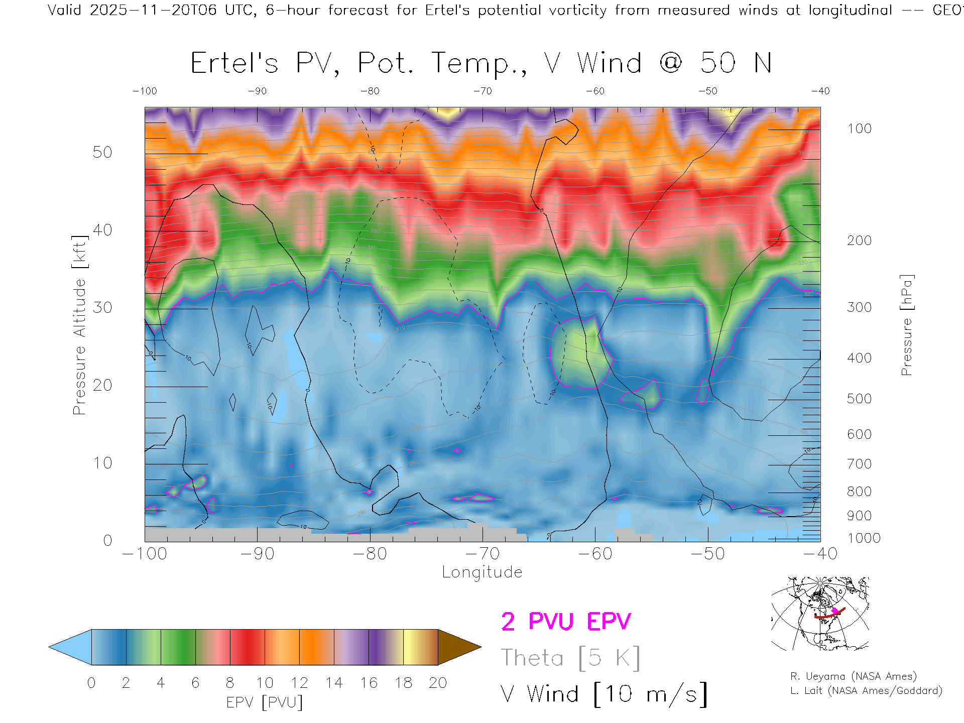 GEOS Forecast PV X-Section (50 N)