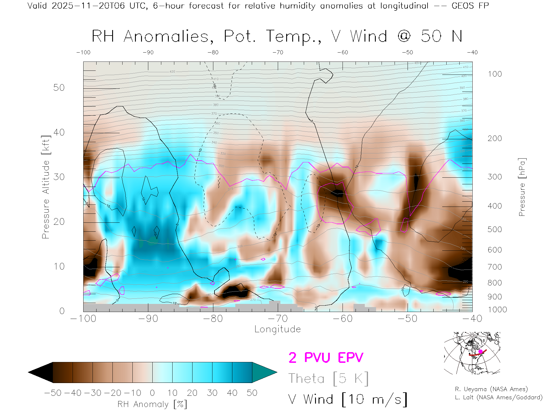GEOS Forecast Rel. Hum. X-Section (50 N)