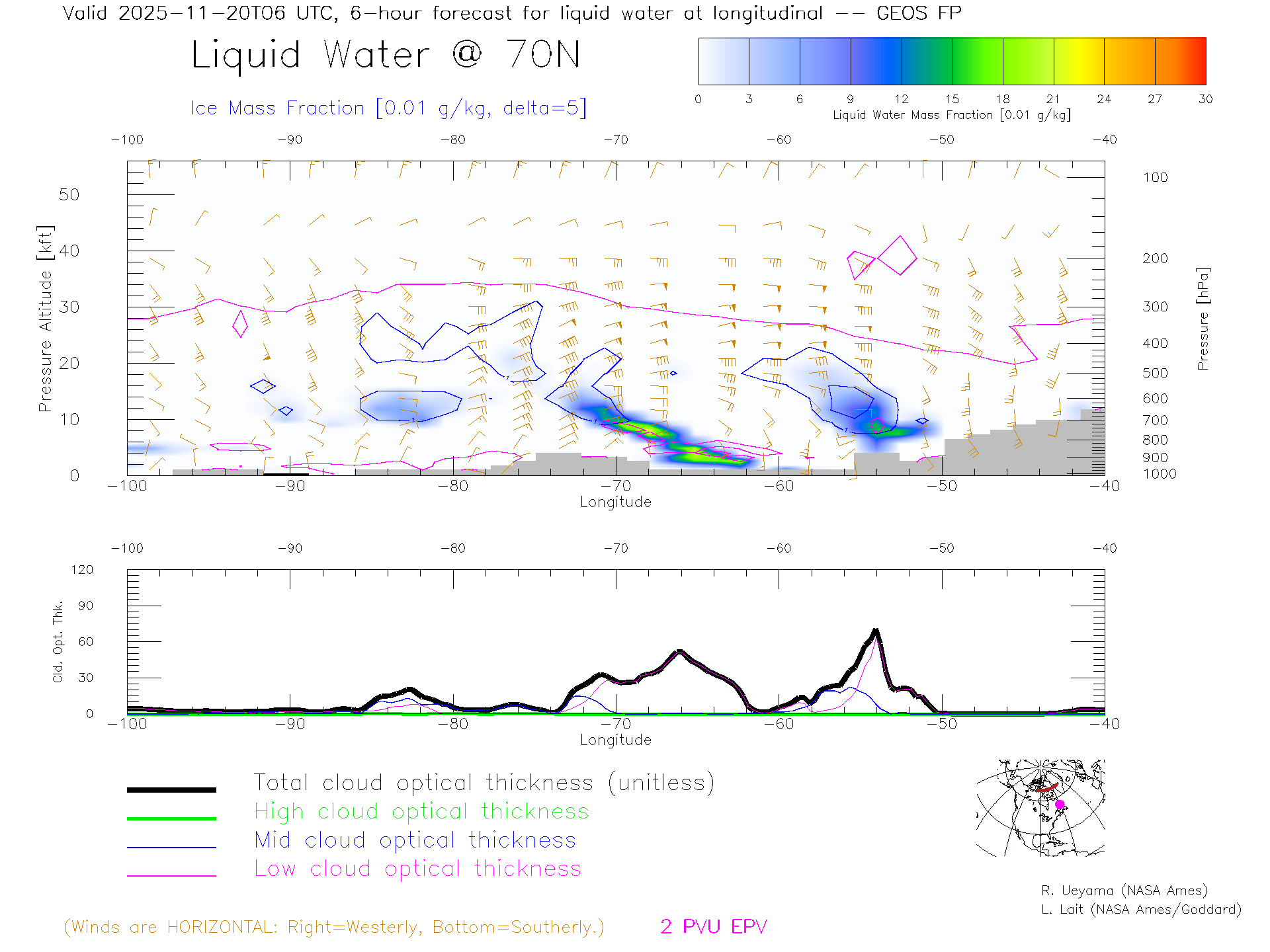 GEOS Forecast Cloud Water Content X-Section (70 N)