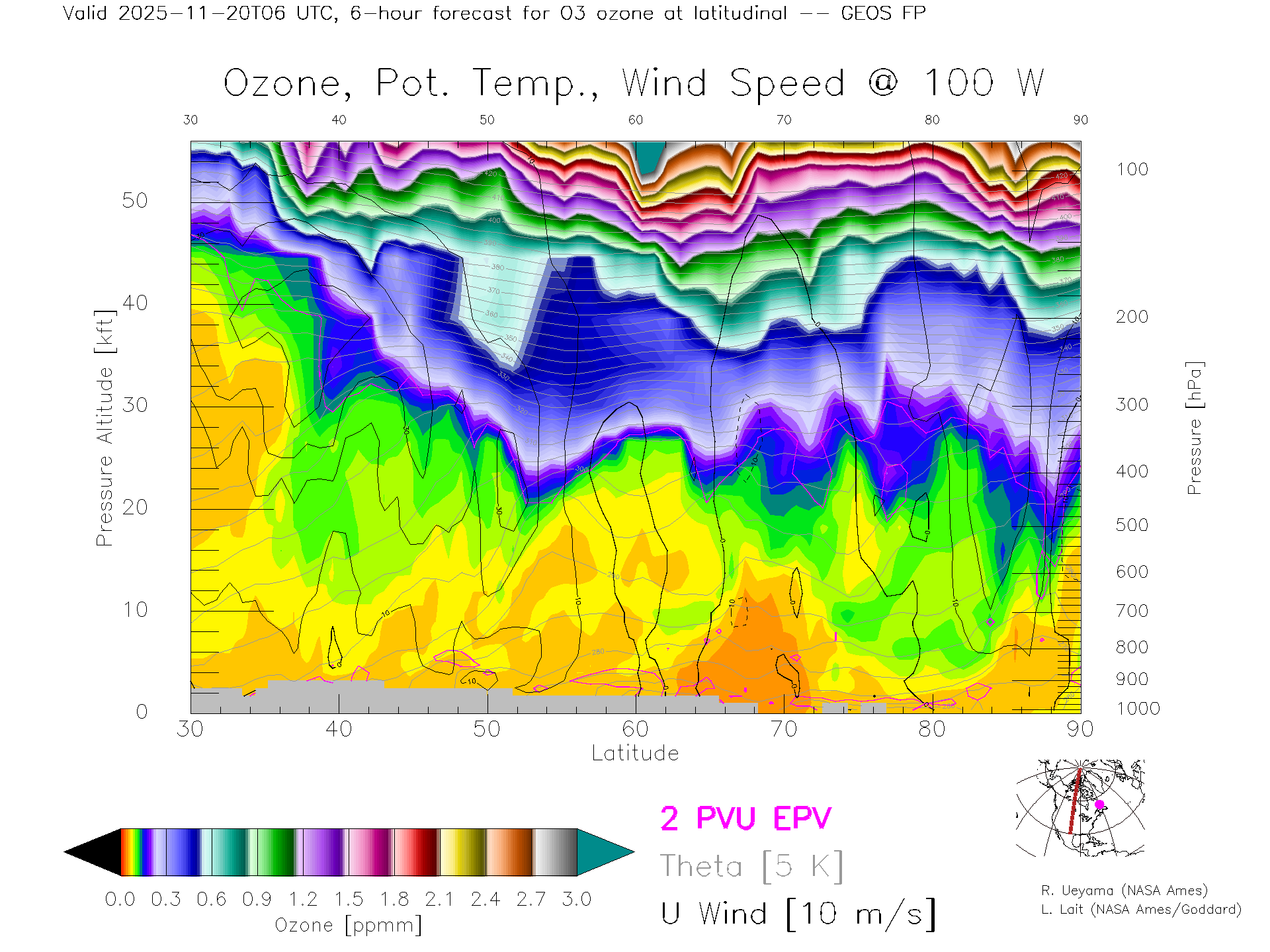 GEOS Forecast Ozone X-Section (100 W)