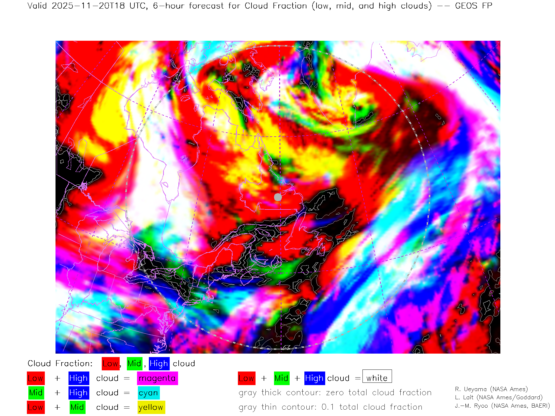 GEOS Forecast Low-, Mid- and High-level Cloud Fraction