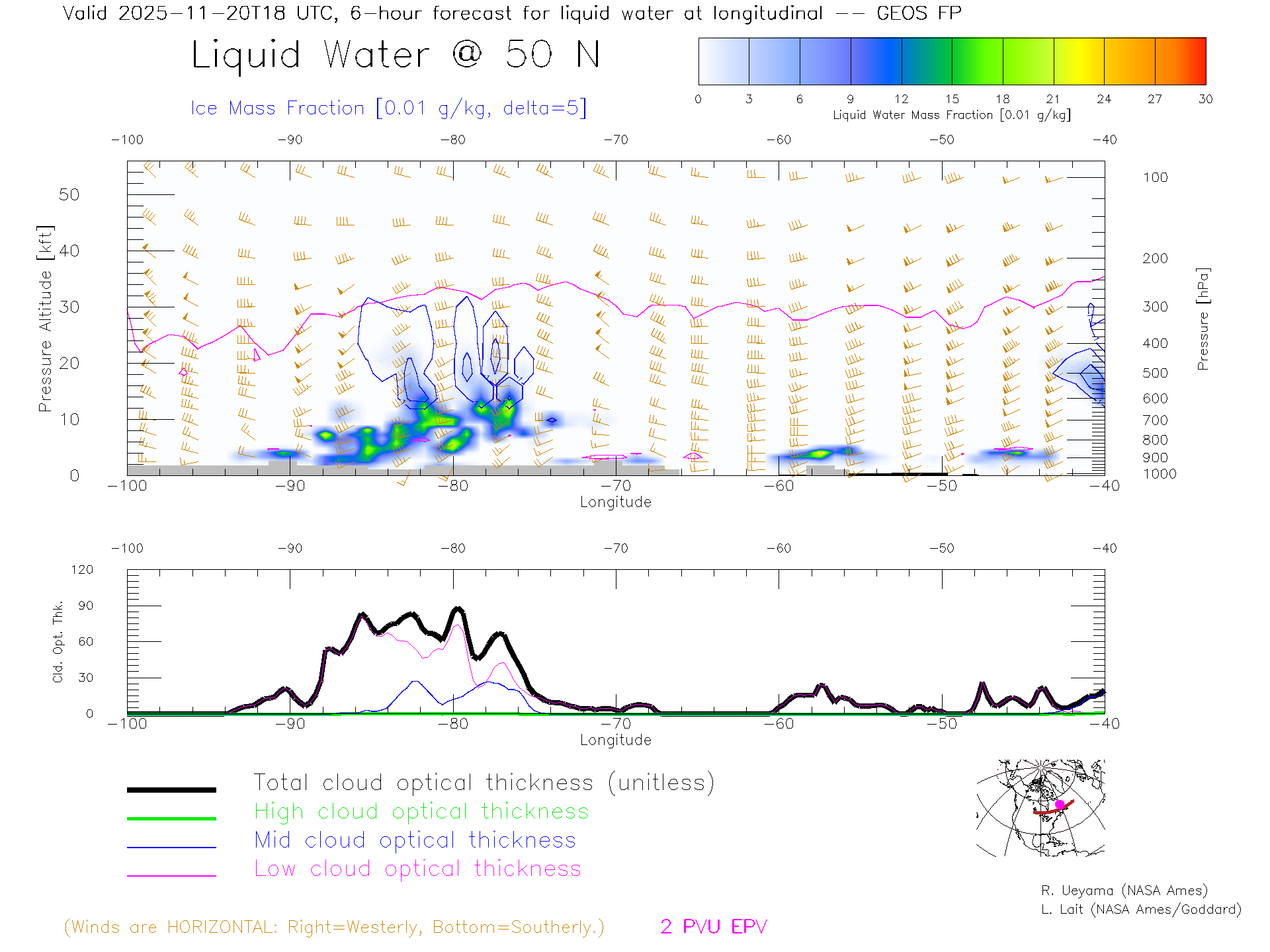 GEOS Forecast Cloud Water Content X-Section (50 N)
