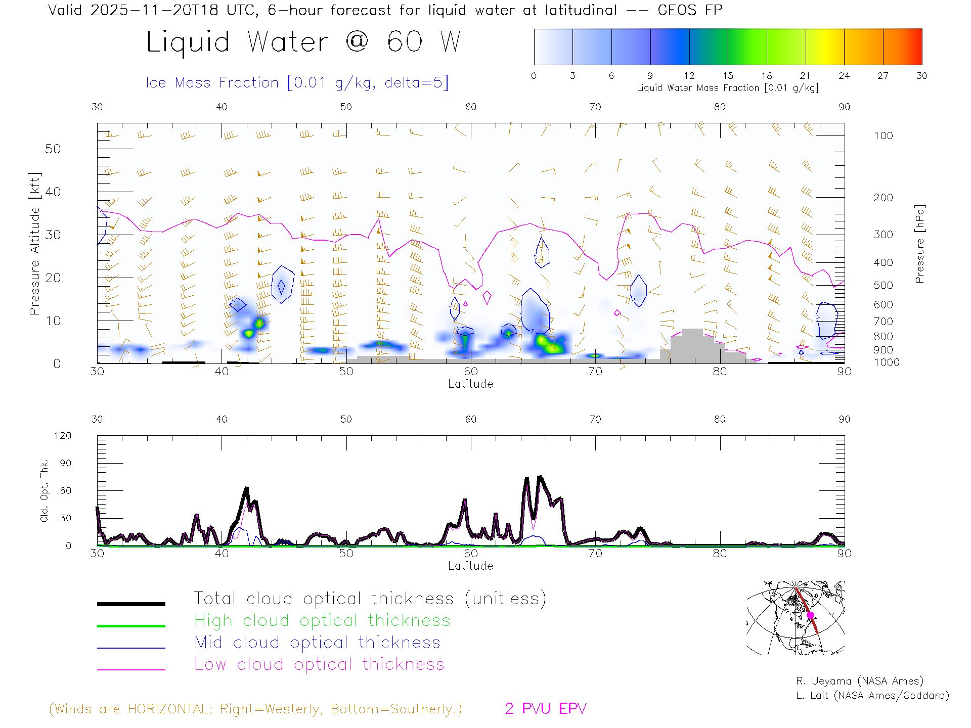 GEOS Forecast Cloud Water Content X-Section (60 W)
