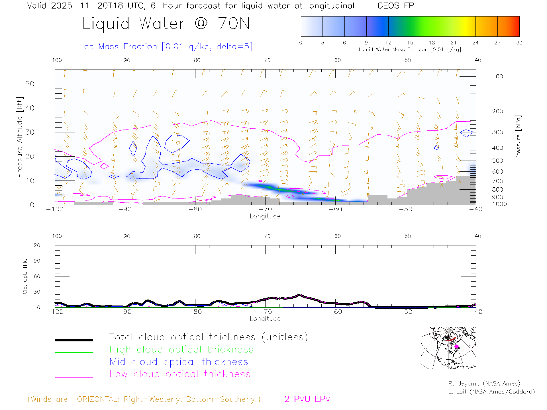 GEOS Forecast Cloud Water Content X-Section (70 N)