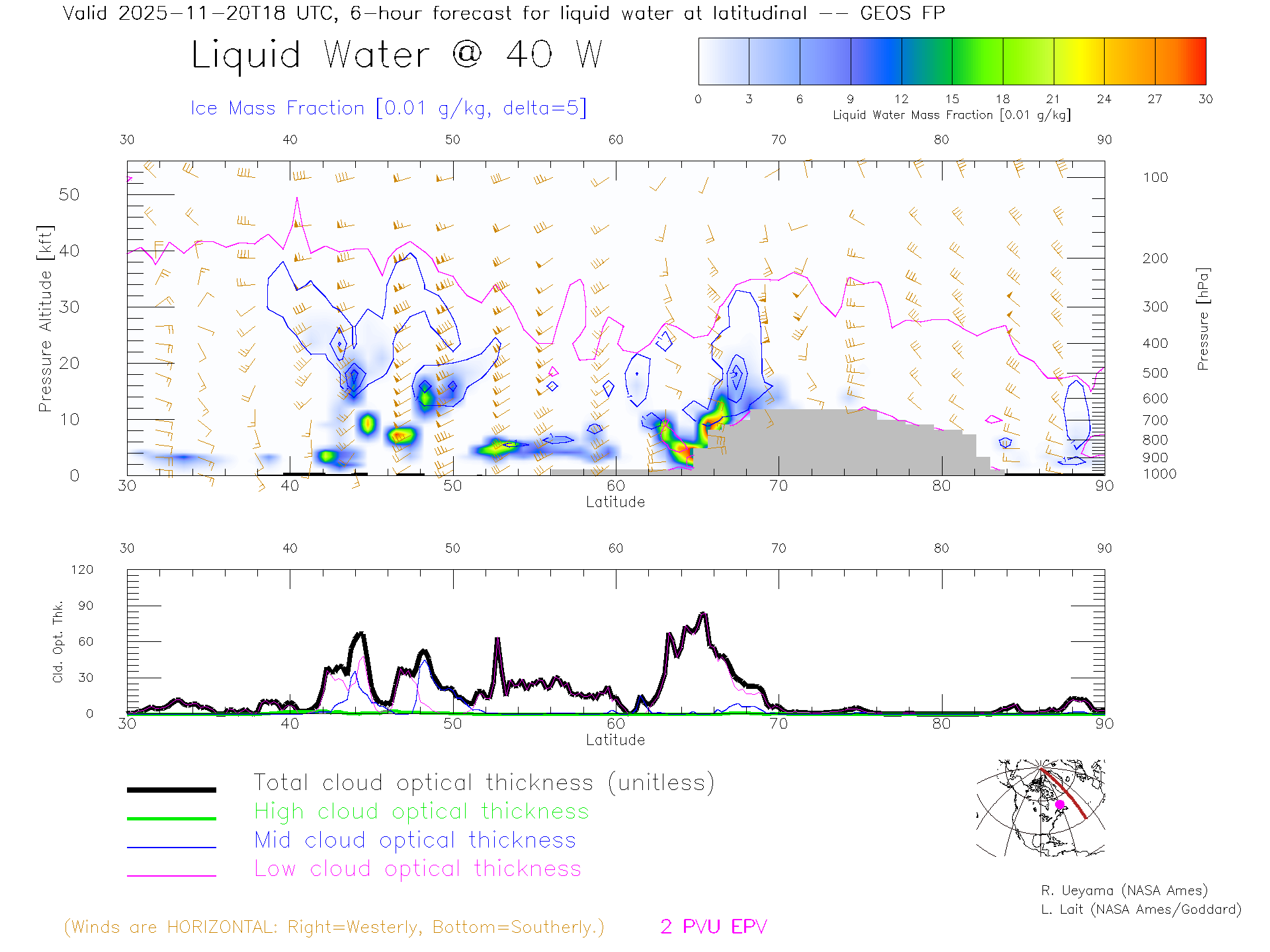 GEOS Forecast Cloud Water Content X-Section (40 W)
