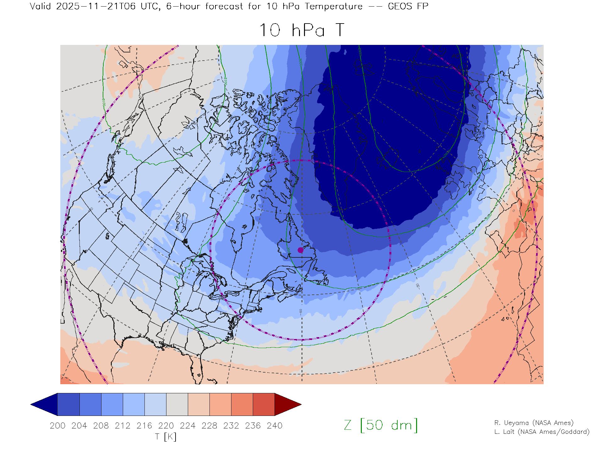 GEOS Forecast 10 hPa Temp.