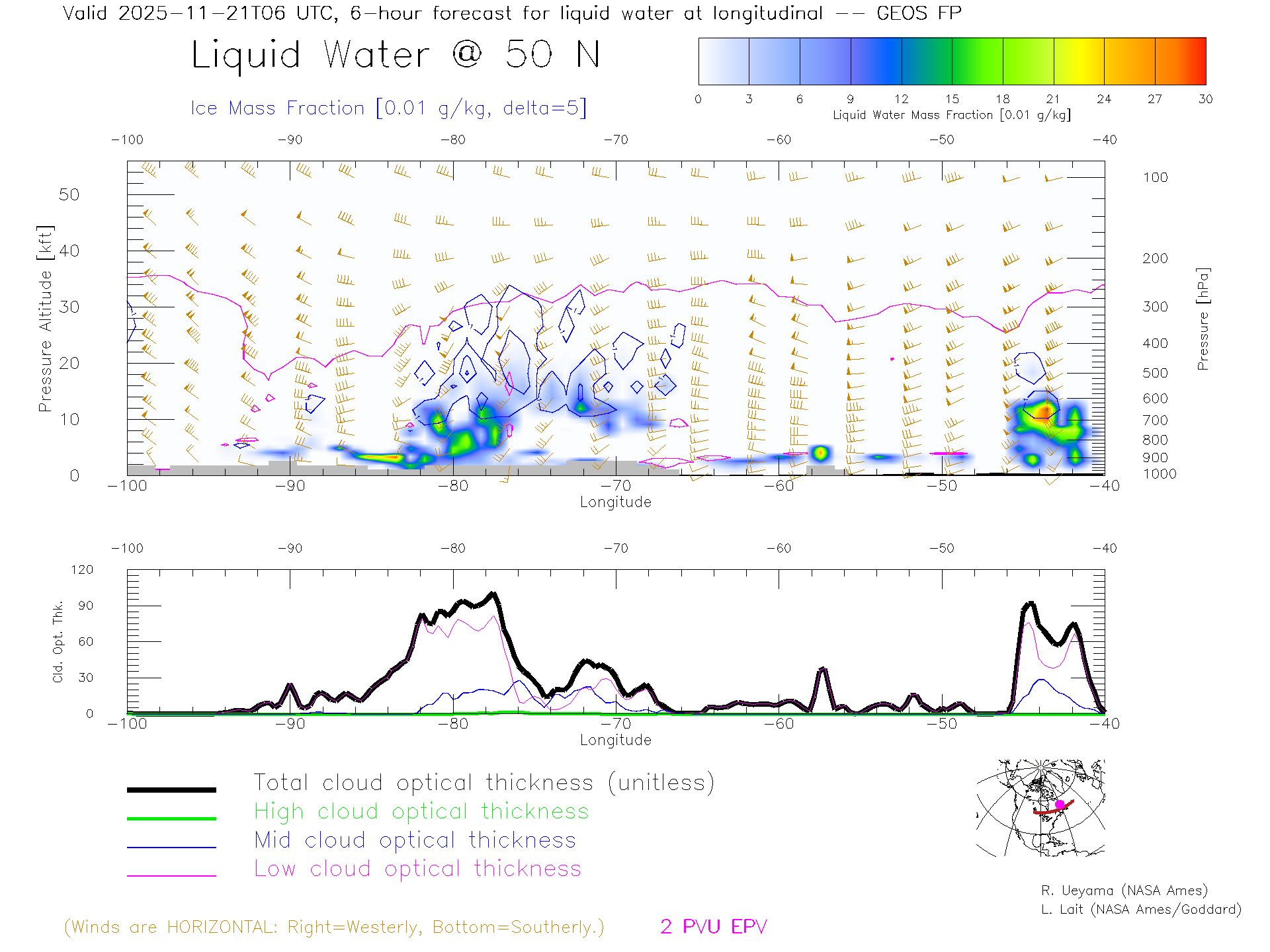 GEOS Forecast Cloud Water Content X-Section (50 N)
