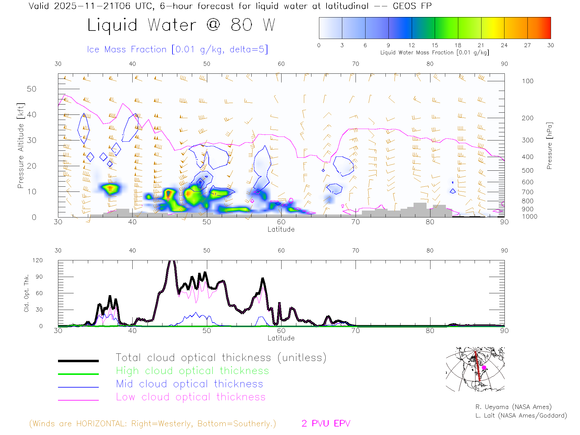 GEOS Forecast Cloud Water Content X-Section (80 W)
