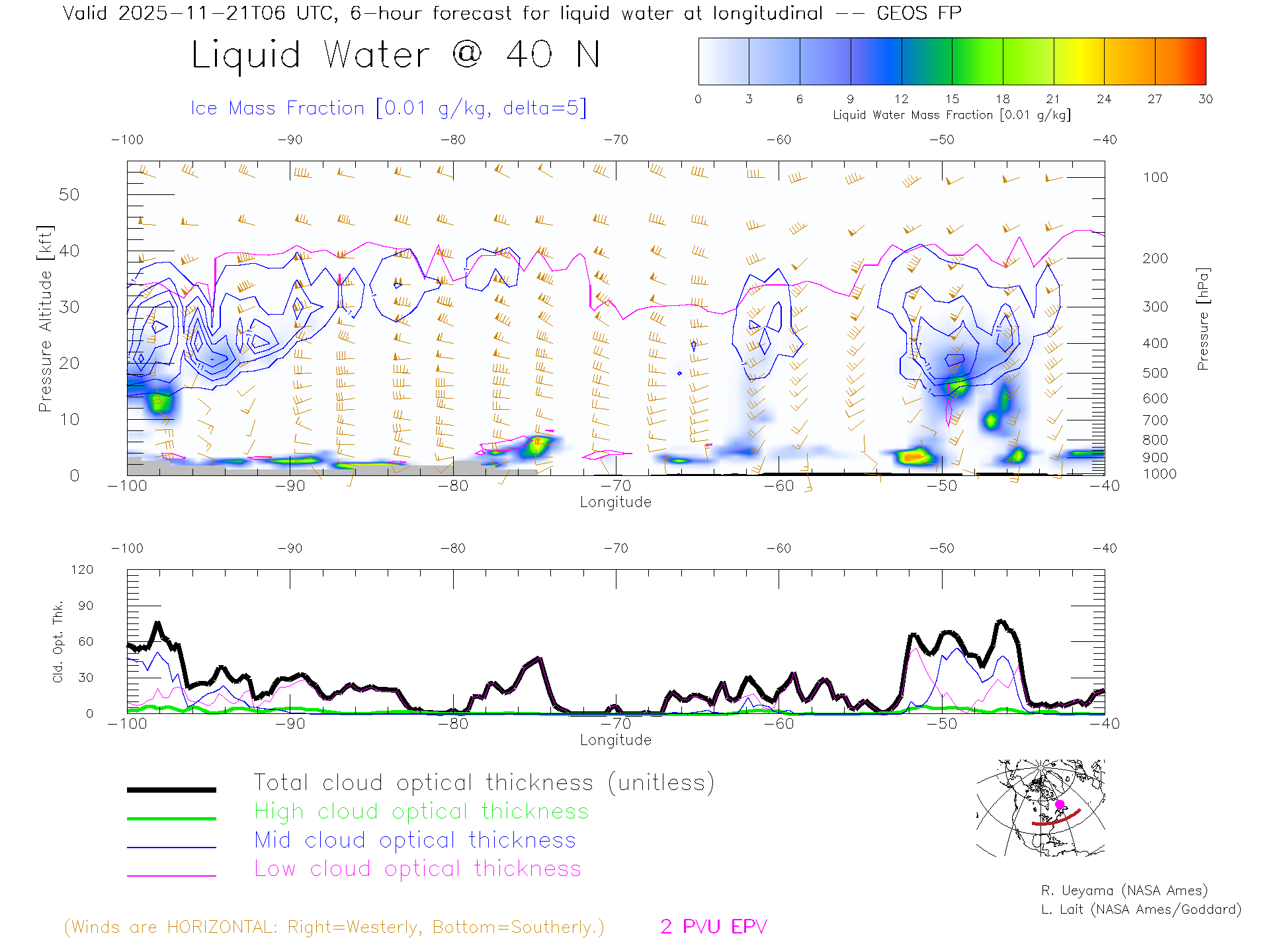 GEOS Forecast Cloud Water Content X-Section (40 N)