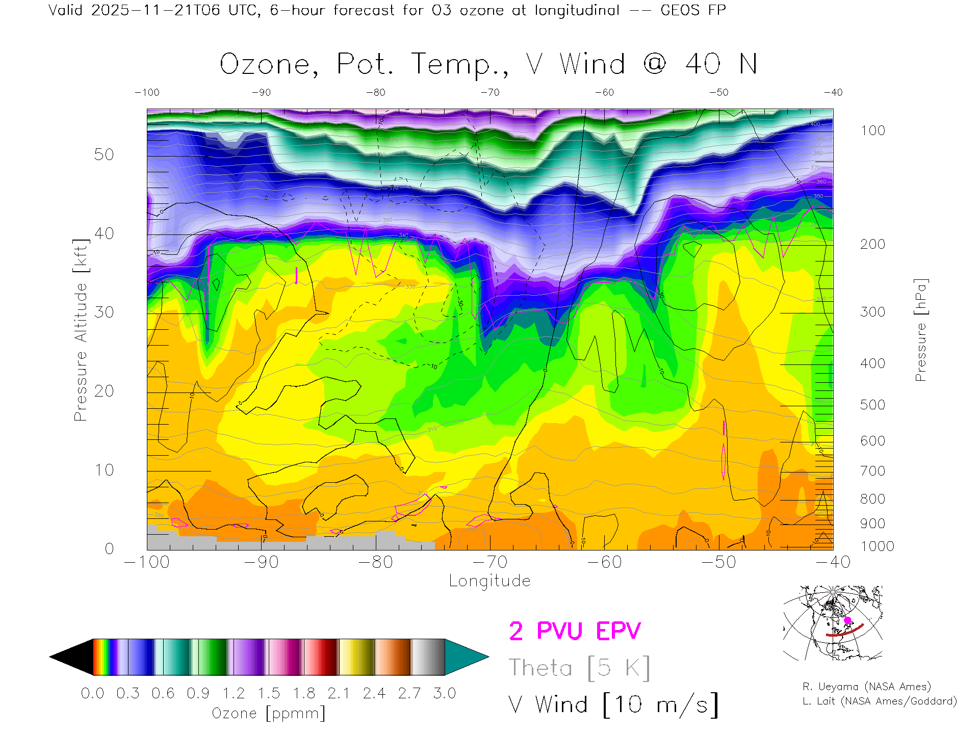 GEOS Forecast Ozone X-Section (40 N)