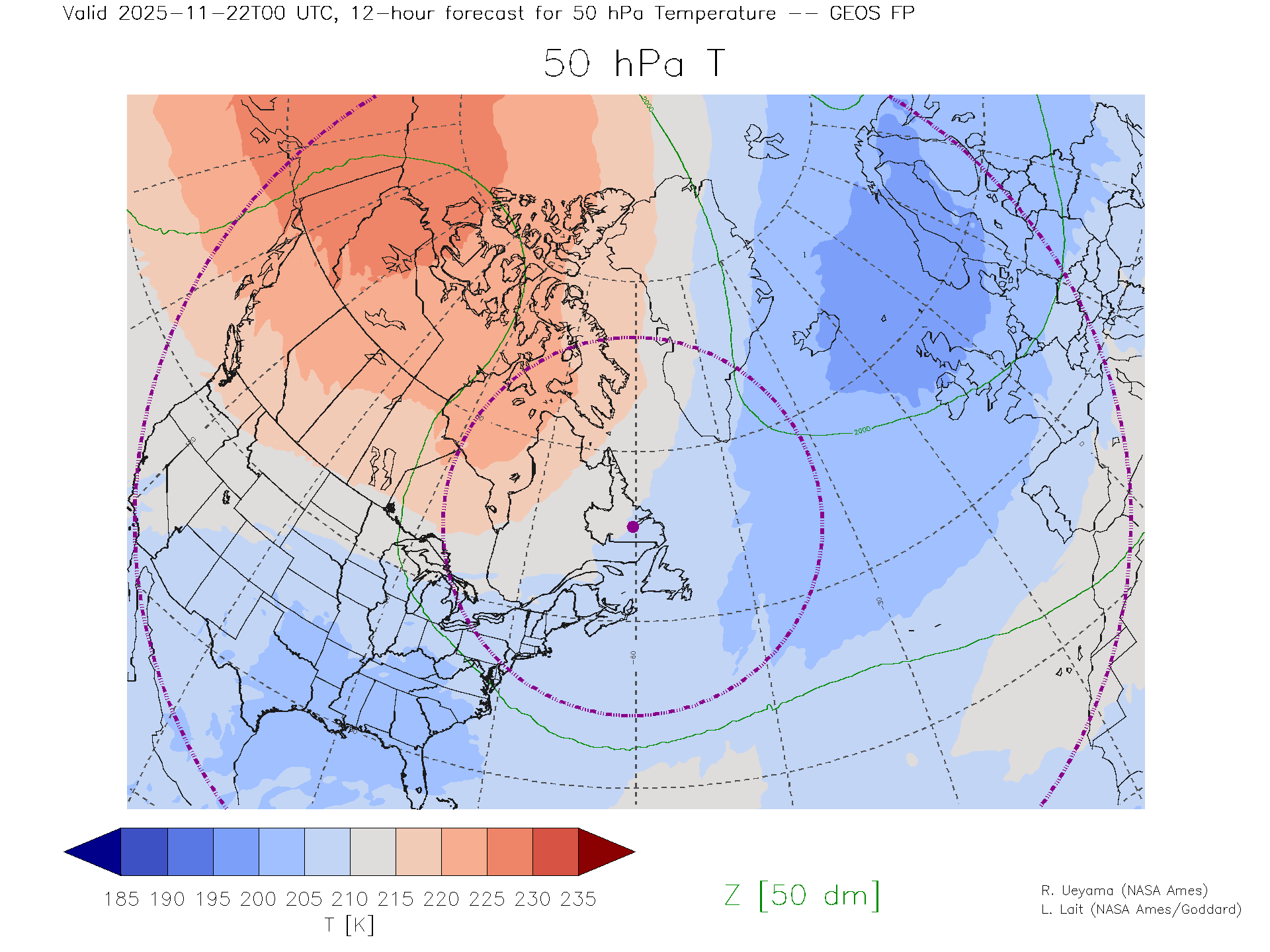 GEOS Forecast 50 hPa Temp.