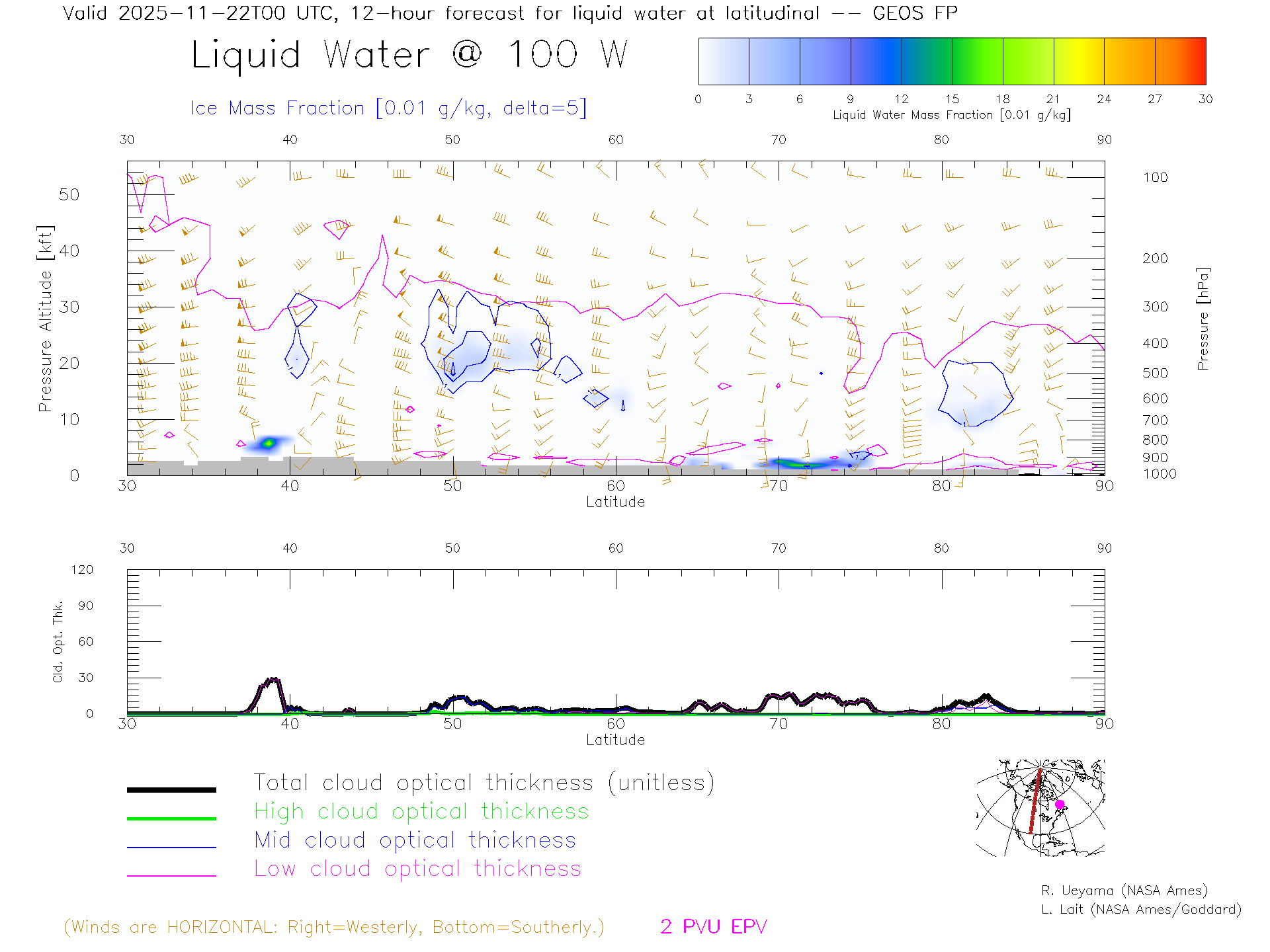 GEOS Forecast Cloud Water Content X-Section (100 W)