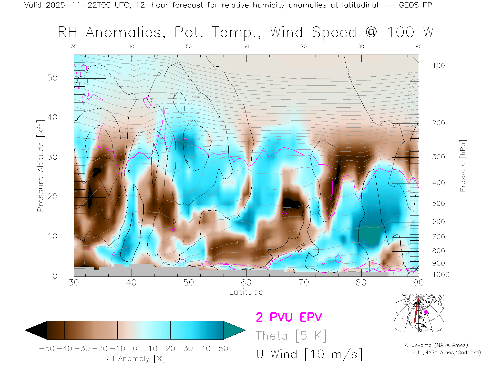GEOS Forecast Rel. Hum. X-Section (100 W)