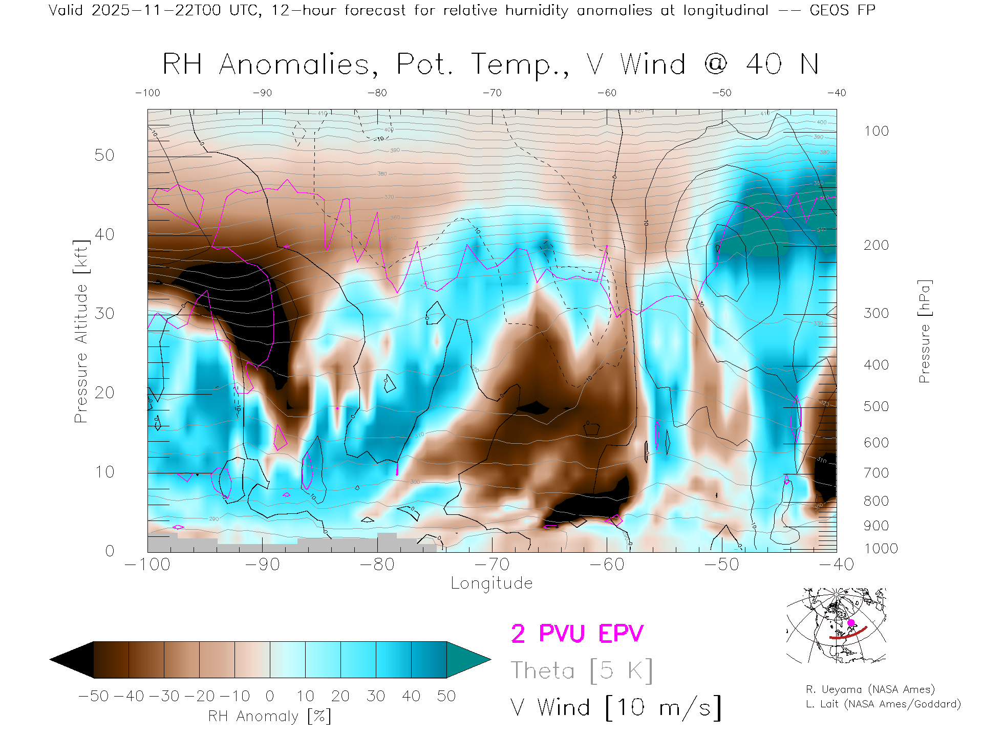 GEOS Forecast Rel. Hum. X-Section (40 N)