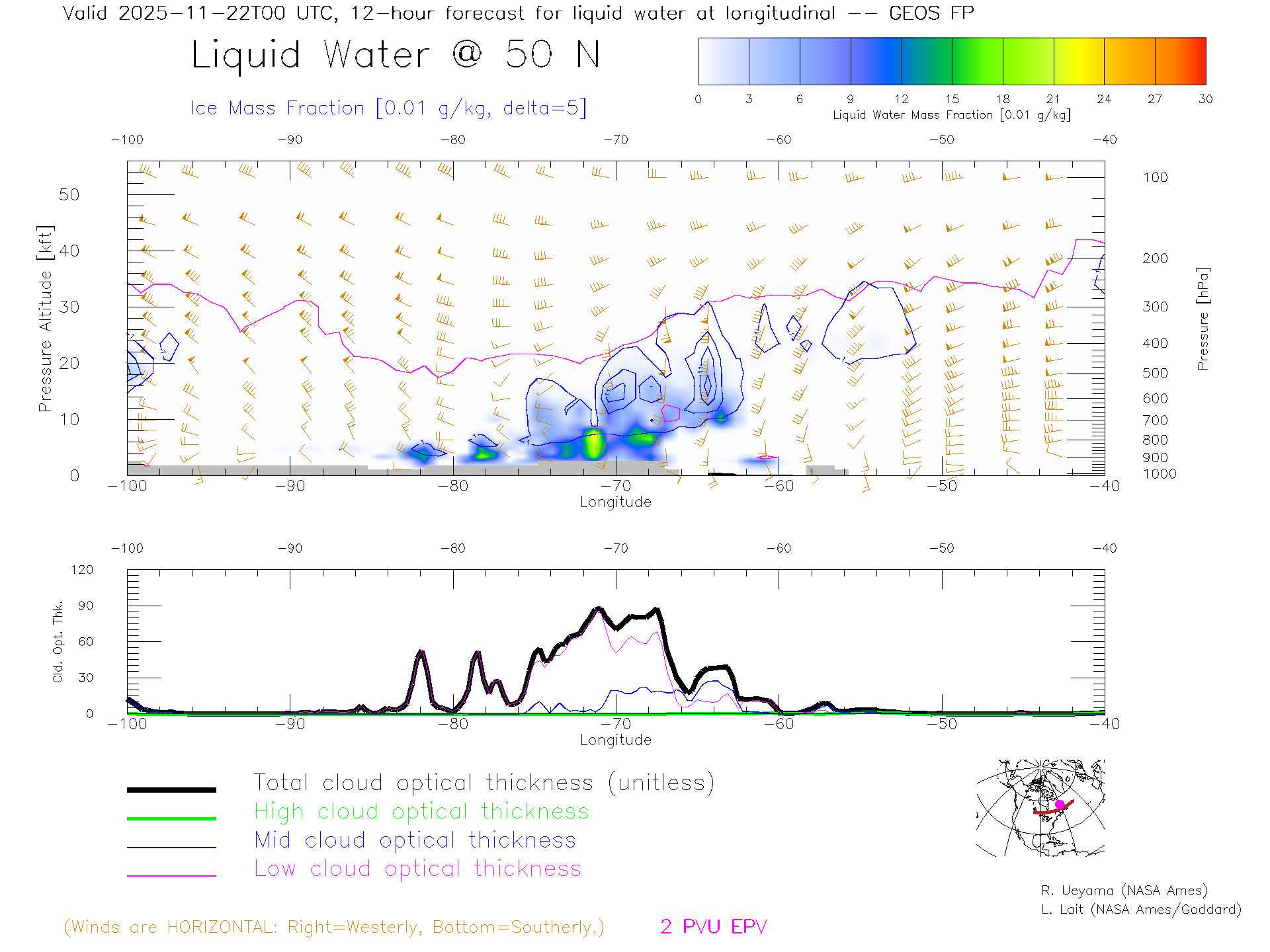 GEOS Forecast Cloud Water Content X-Section (50 N)
