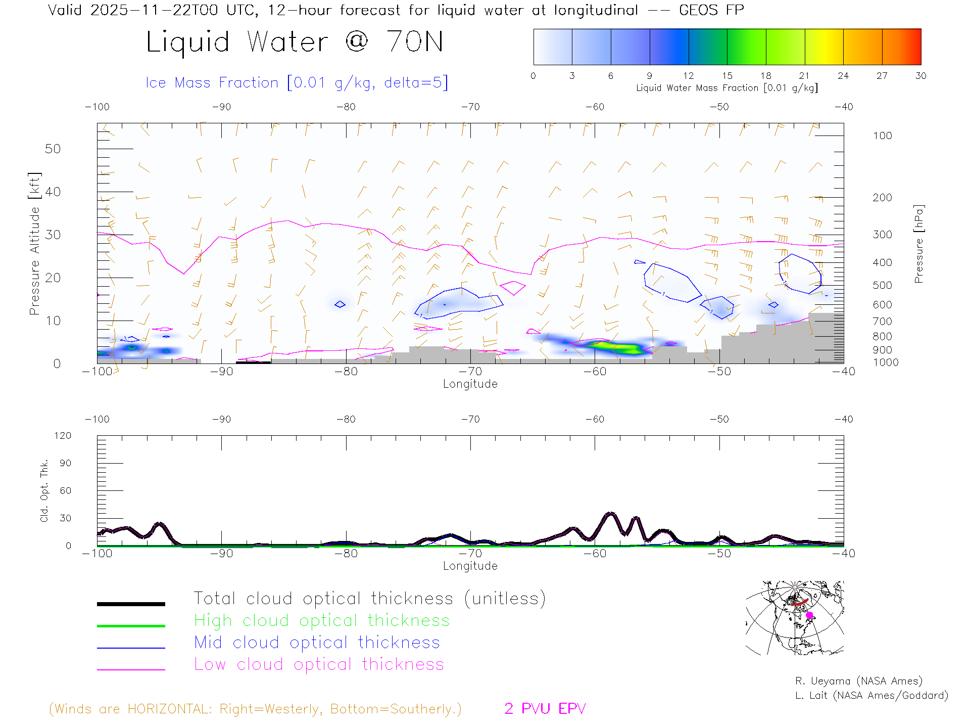 GEOS Forecast Cloud Water Content X-Section (70 N)