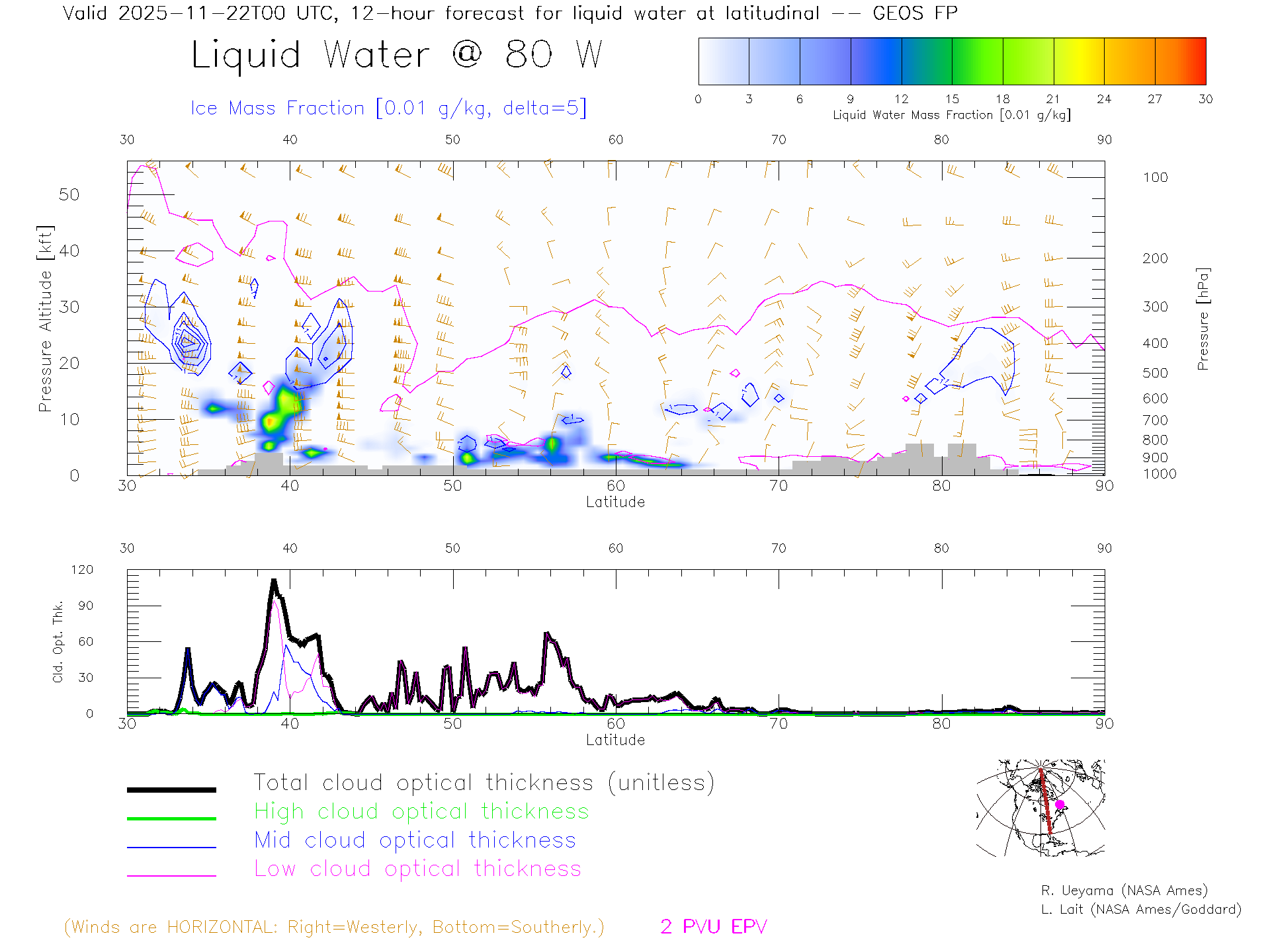 GEOS Forecast Cloud Water Content X-Section (80 W)