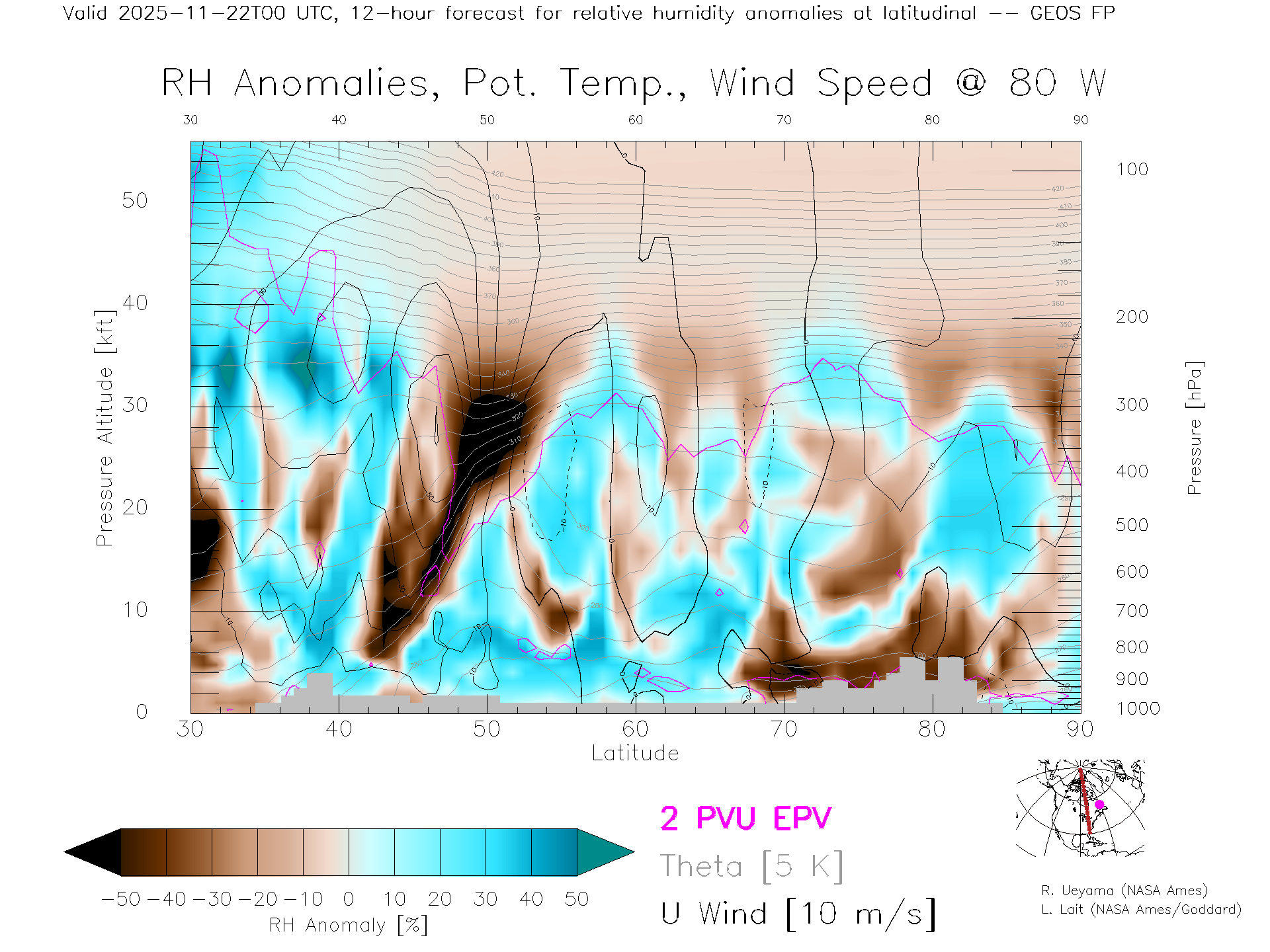 GEOS Forecast Rel. Hum. X-Section (80 W)