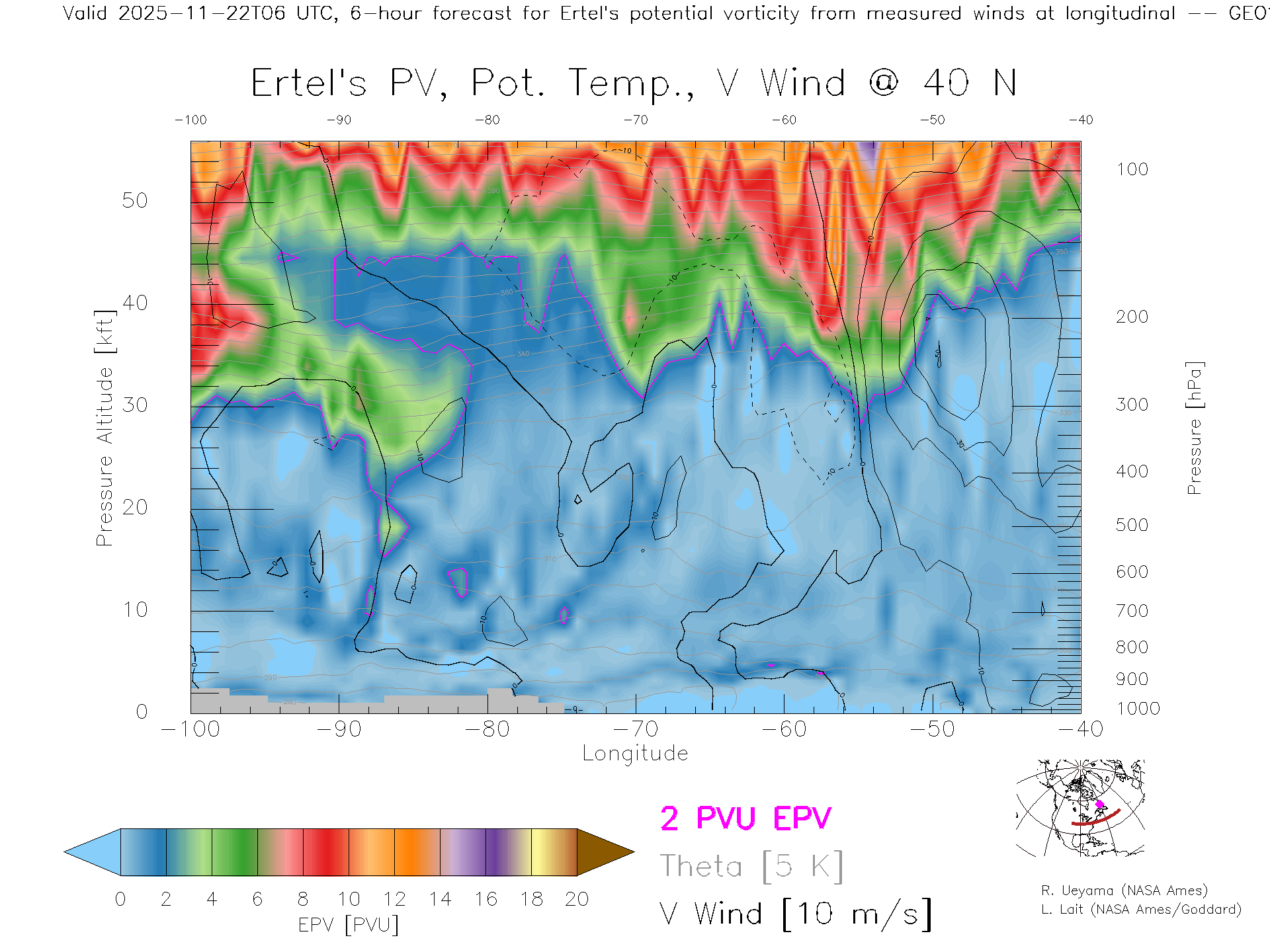 GEOS Forecast PV X-Section (40 N)