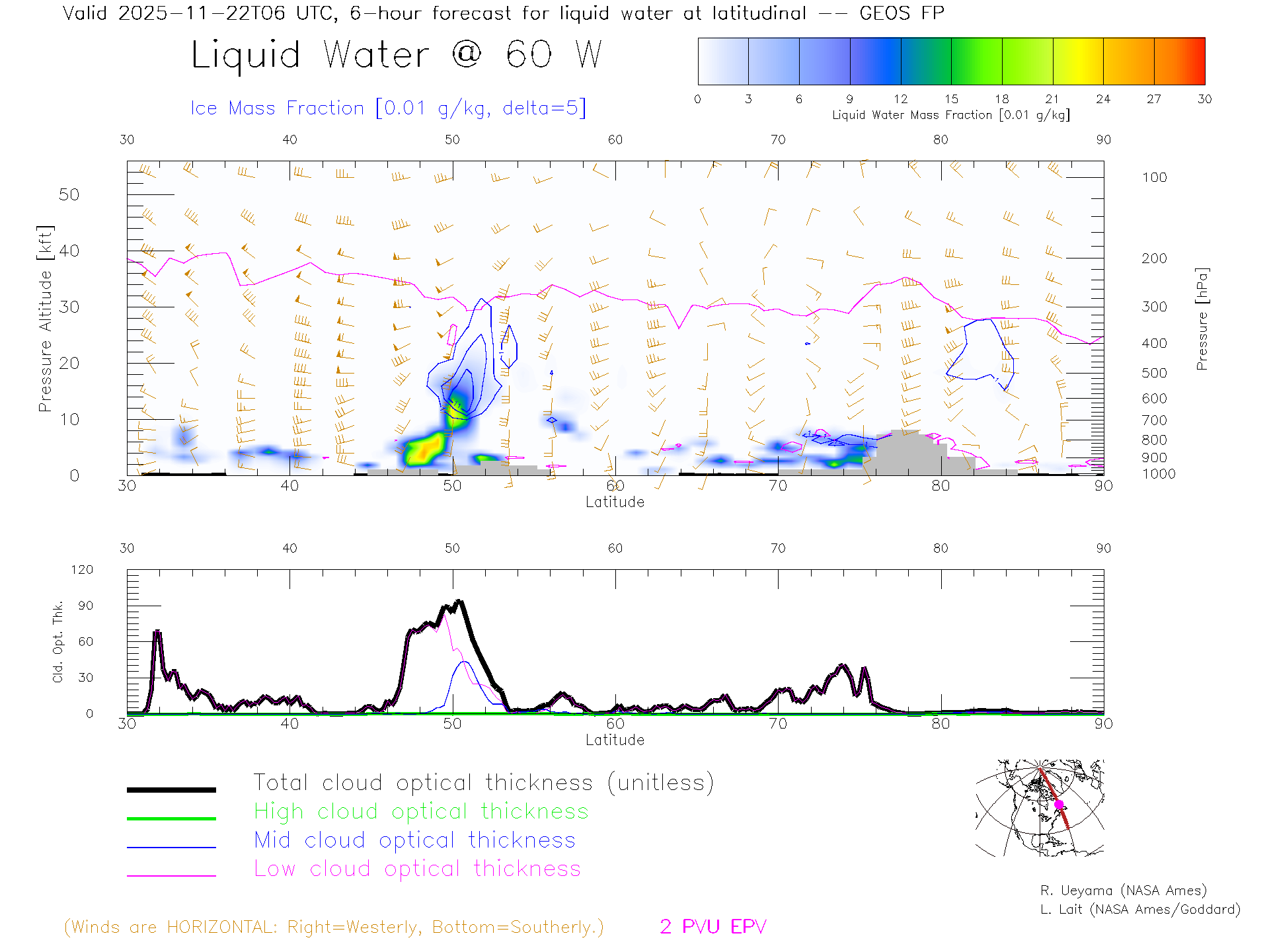 GEOS Forecast Cloud Water Content X-Section (60 W)