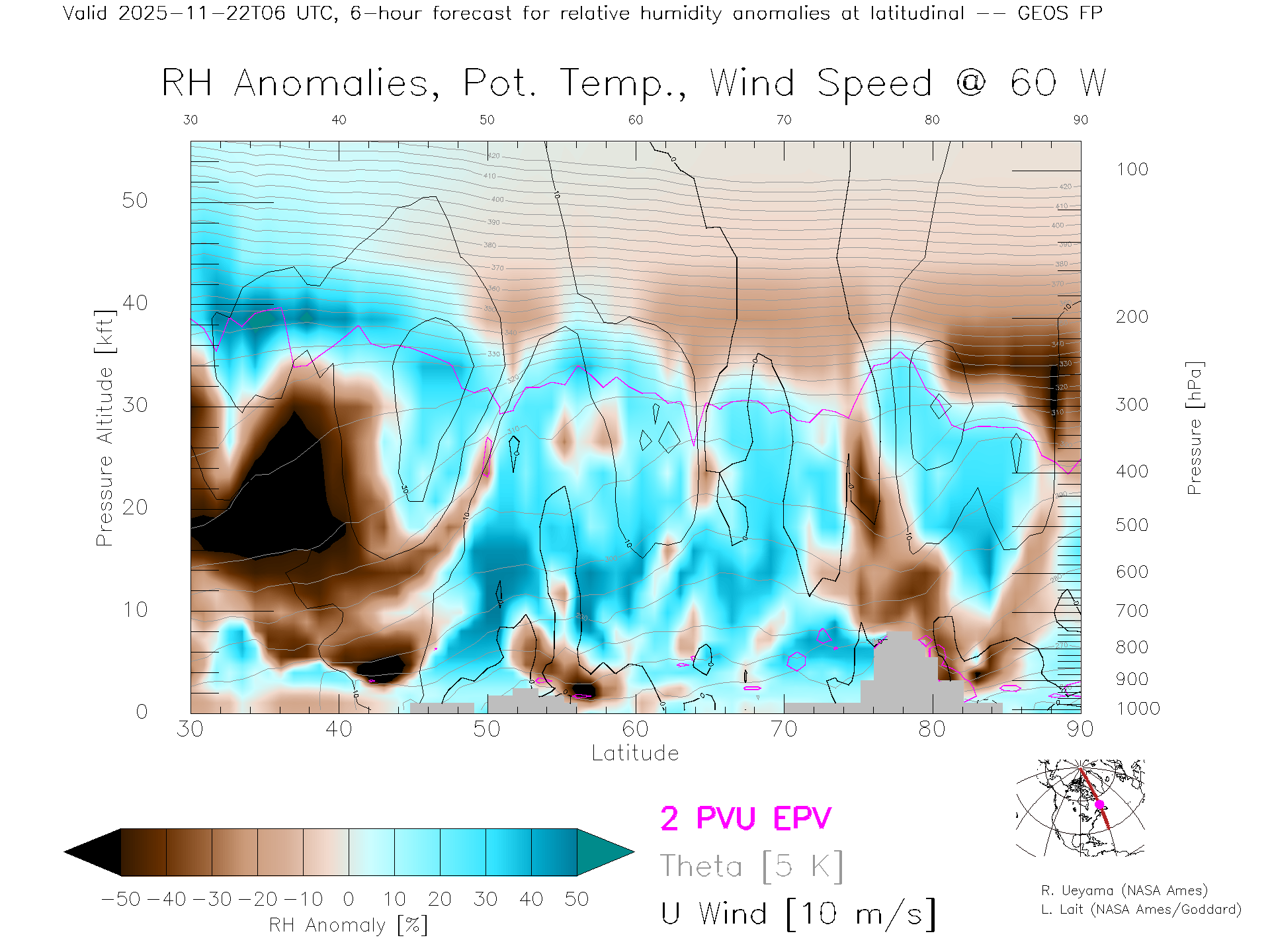 GEOS Forecast Rel. Hum. X-Section (60 W)