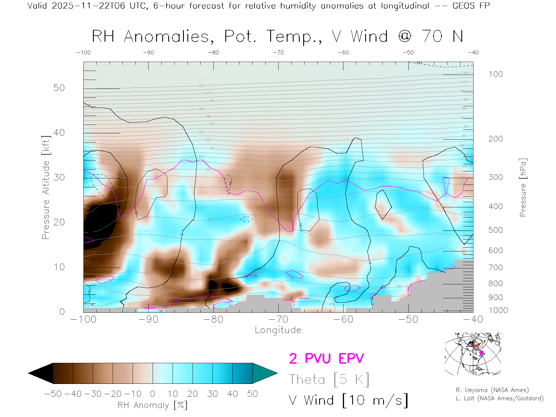 GEOS Forecast Rel. Hum. X-Section (70 N)
