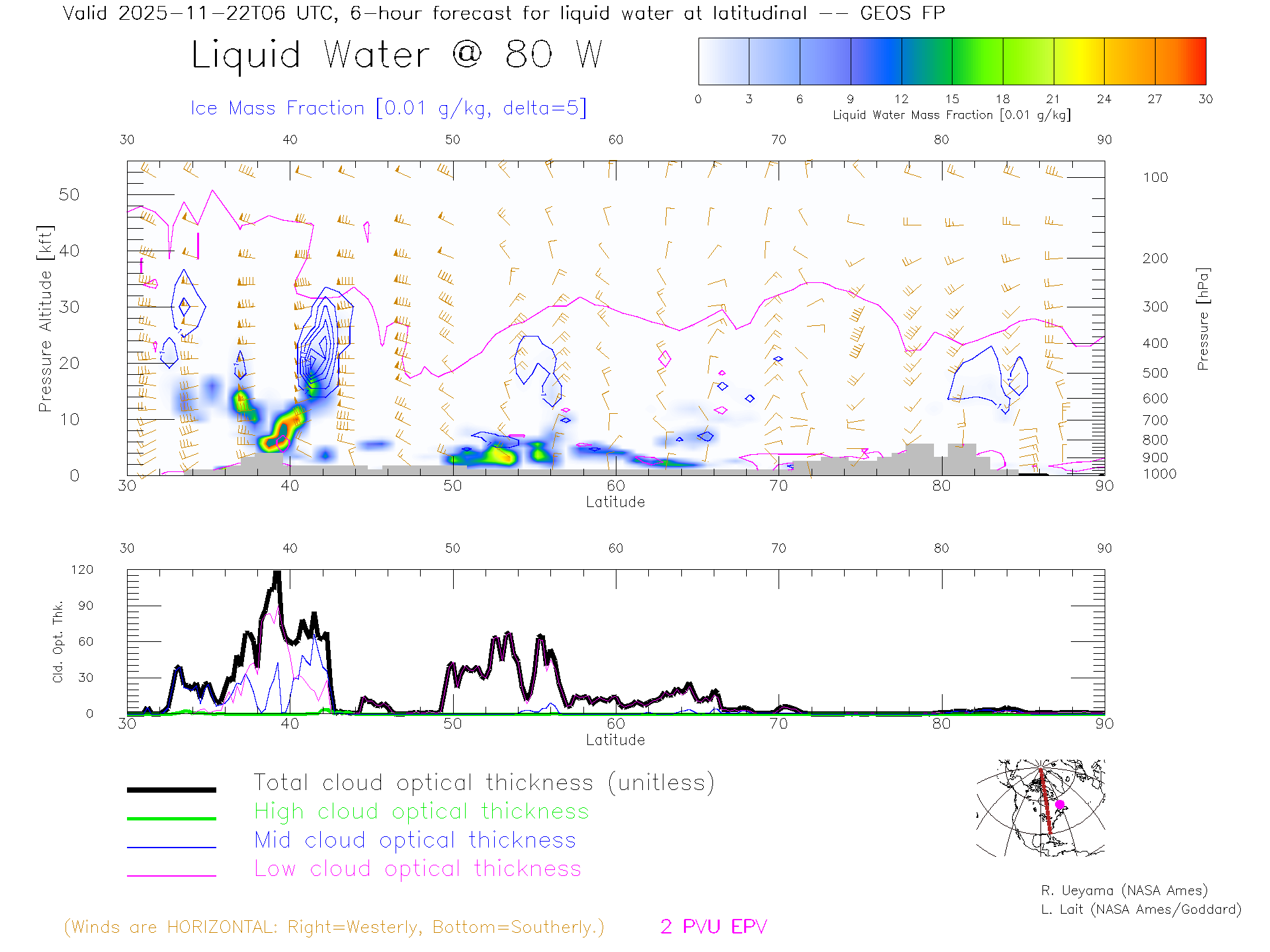 GEOS Forecast Cloud Water Content X-Section (80 W)