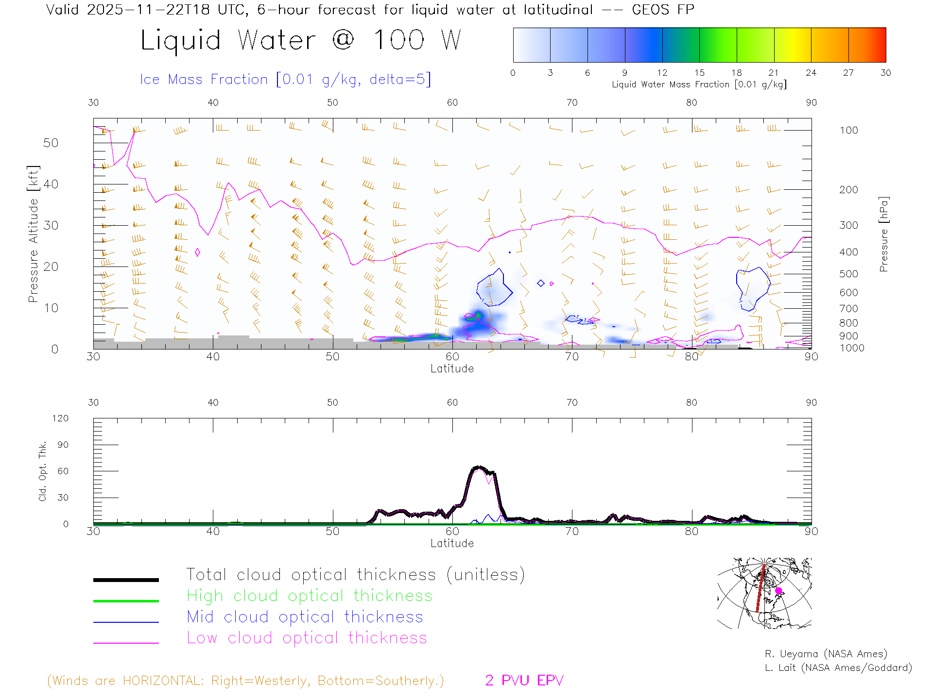 GEOS Forecast Cloud Water Content X-Section (100 W)