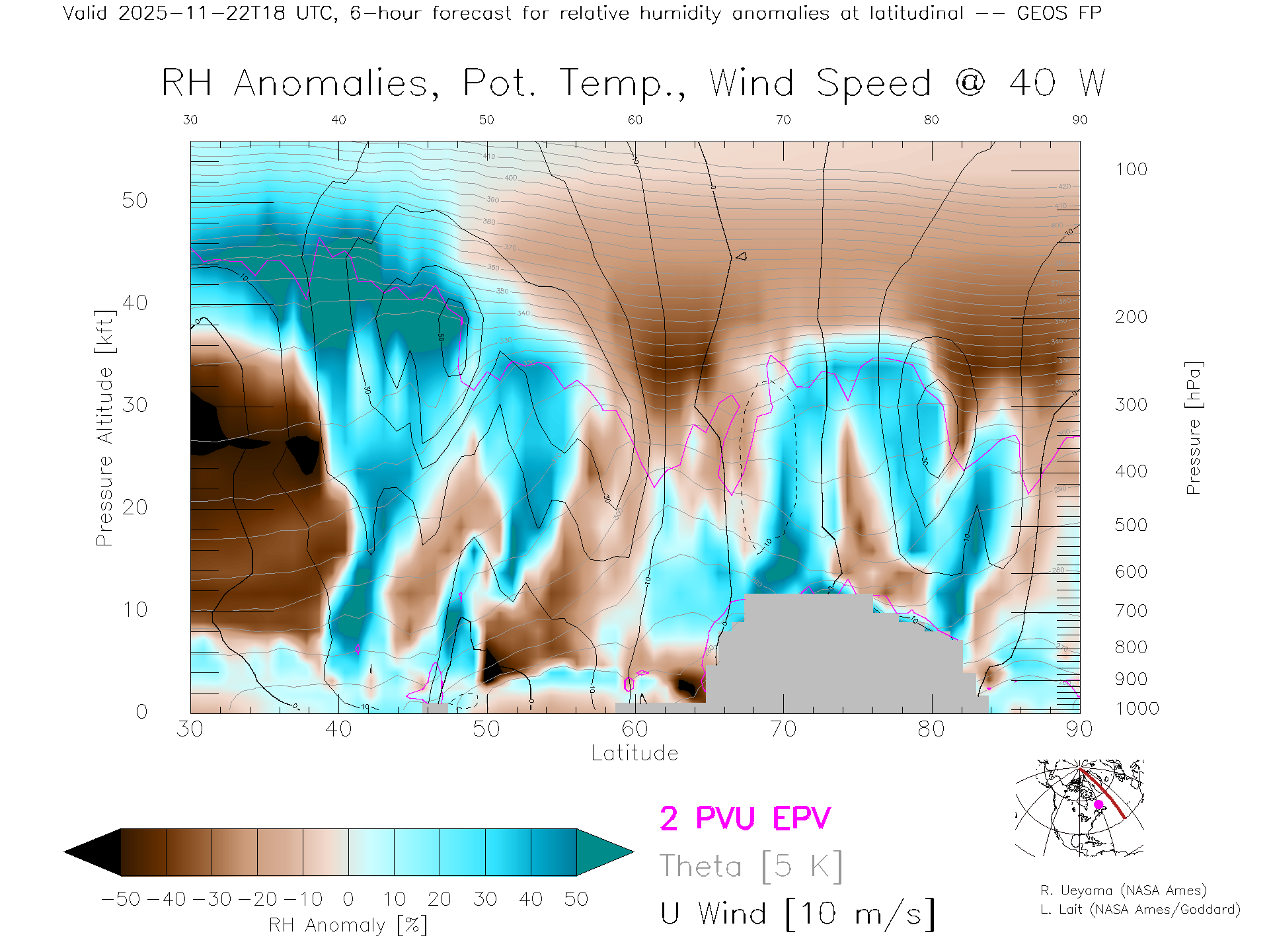 GEOS Forecast Rel. Hum. X-Section (40 W)