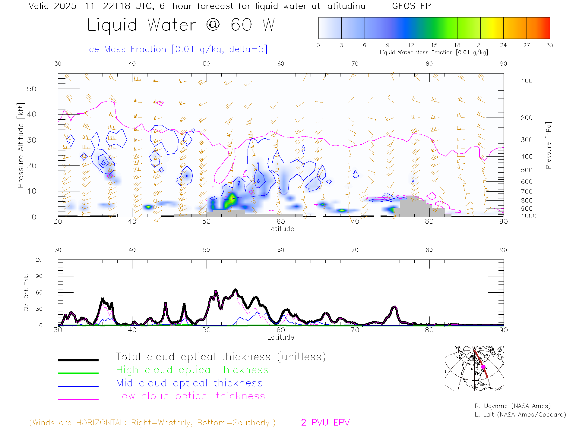 GEOS Forecast Cloud Water Content X-Section (60 W)