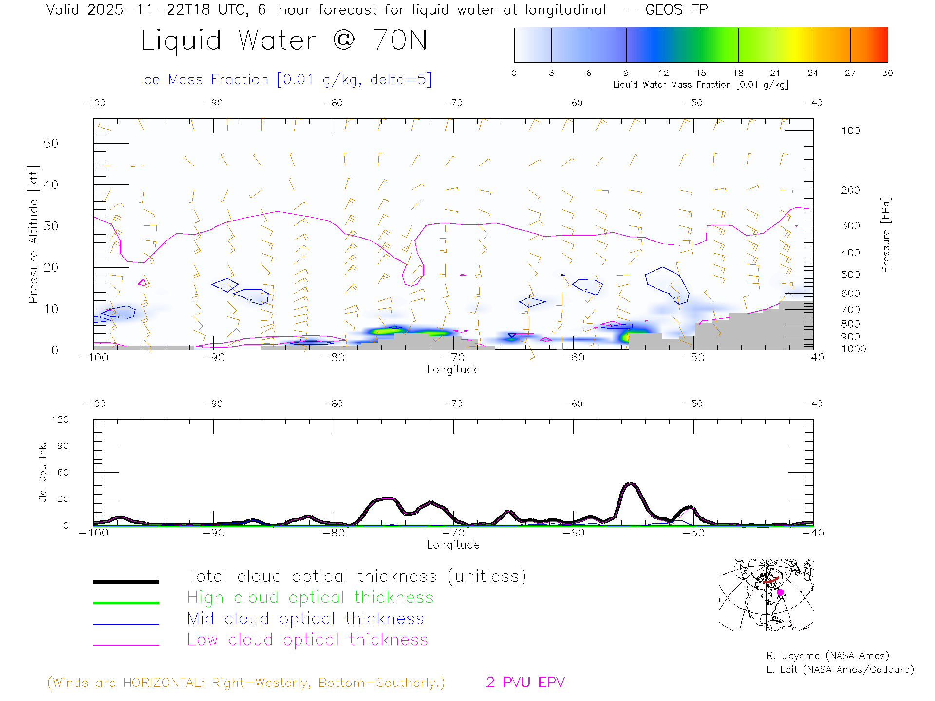 GEOS Forecast Cloud Water Content X-Section (70 N)