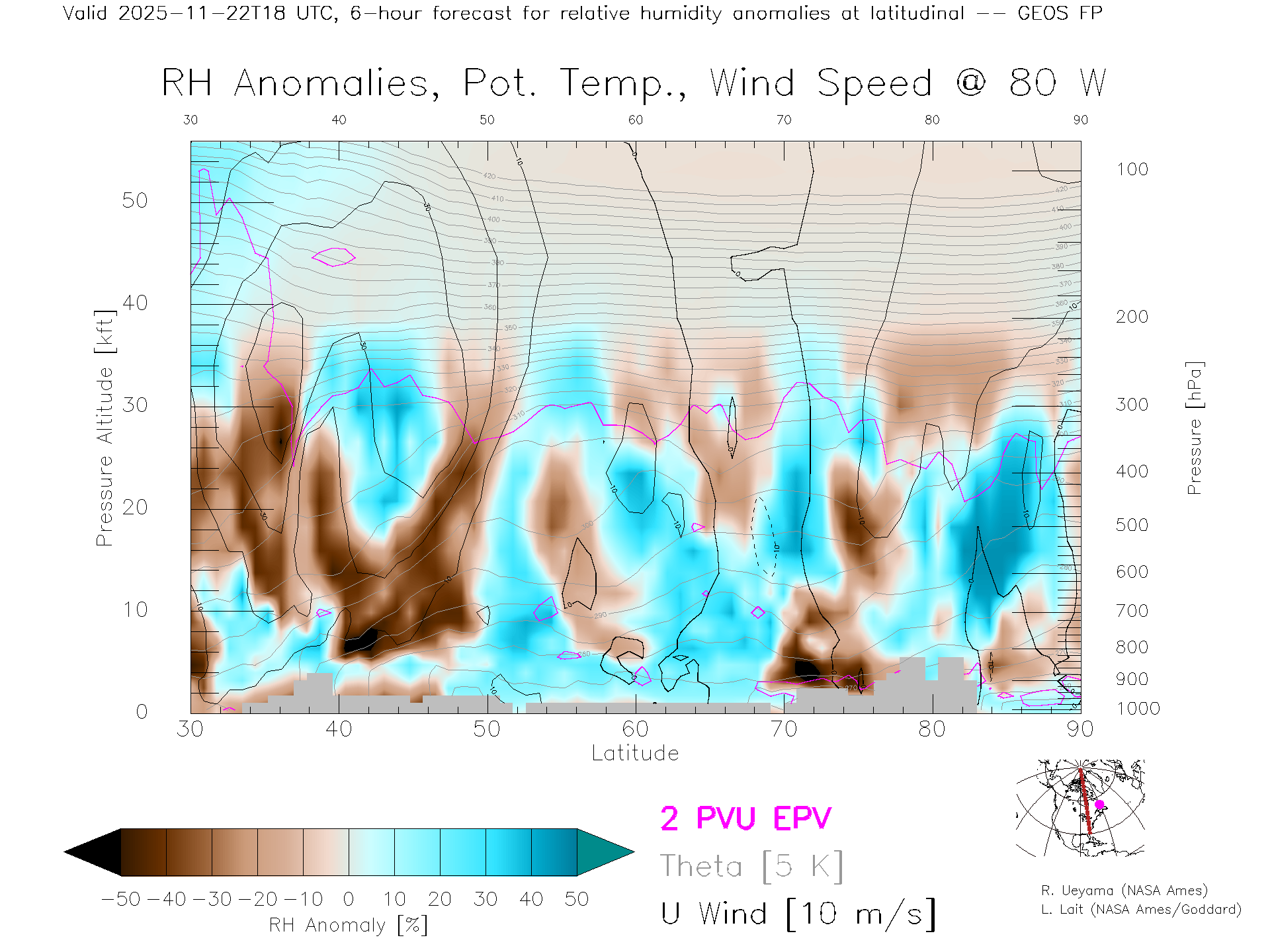 GEOS Forecast Rel. Hum. X-Section (80 W)