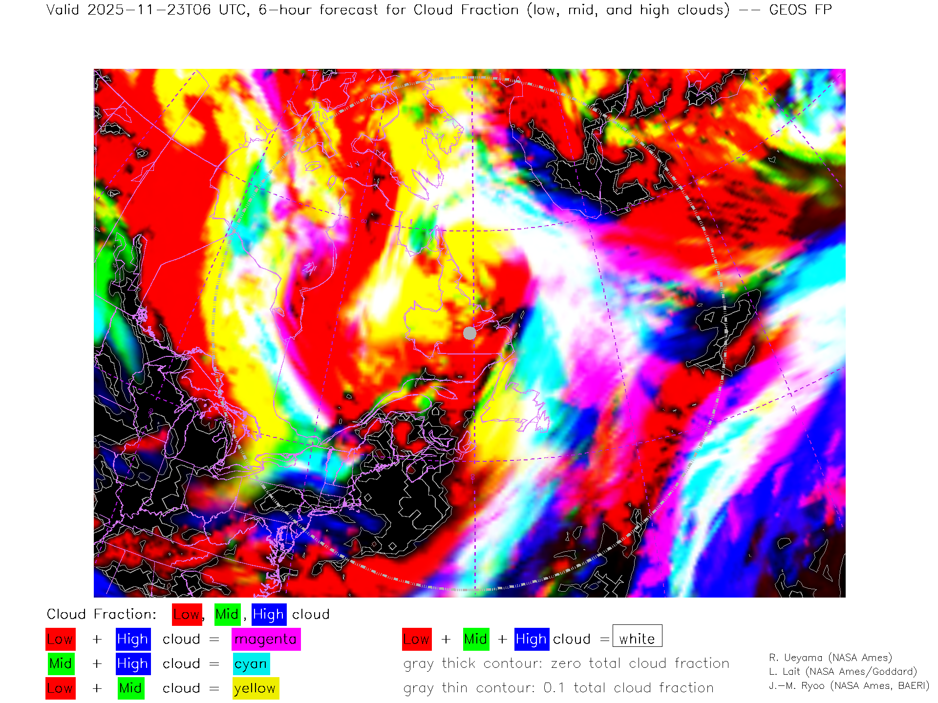 GEOS Forecast Low-, Mid- and High-level Cloud Fraction