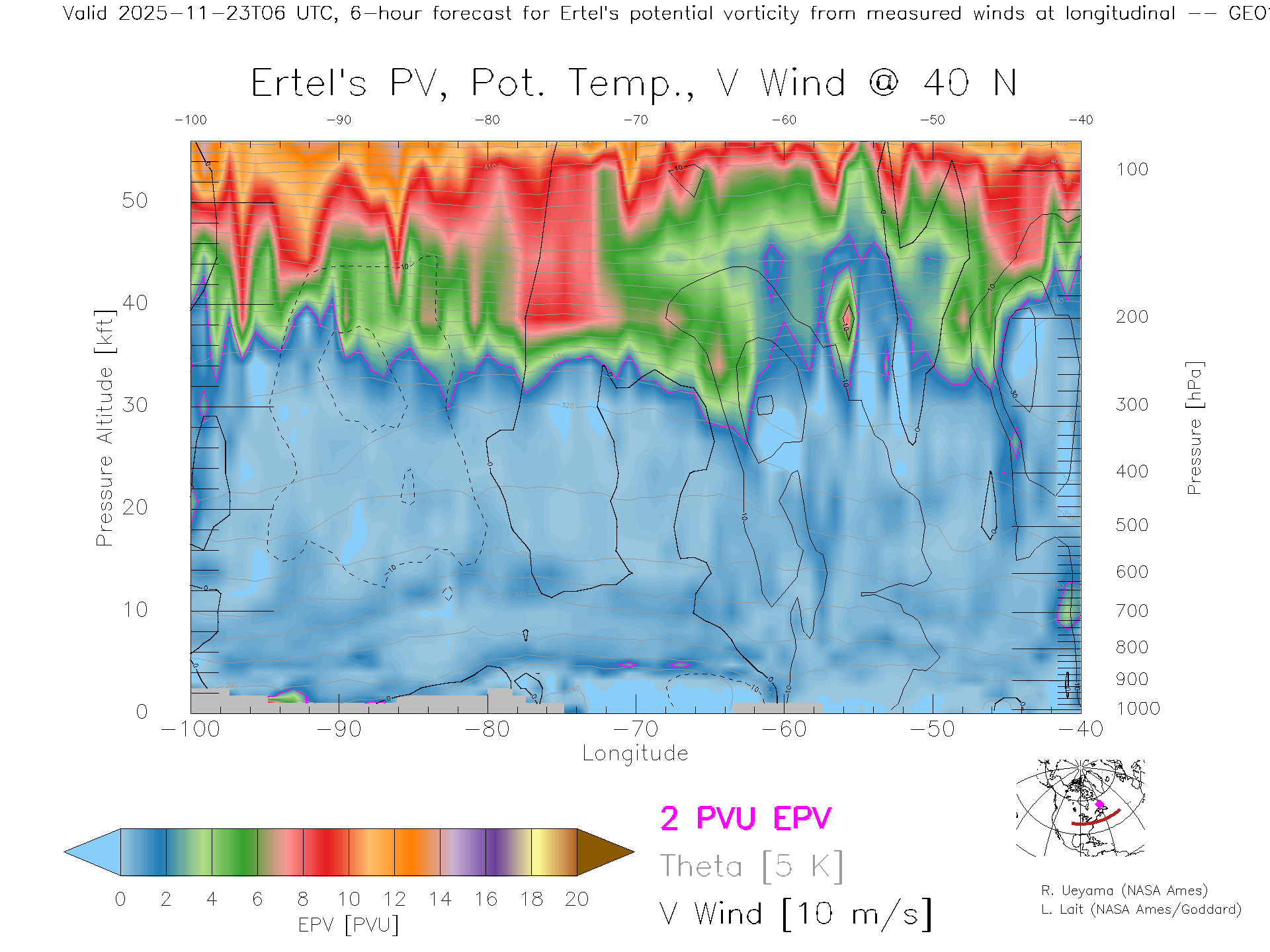 GEOS Forecast PV X-Section (40 N)