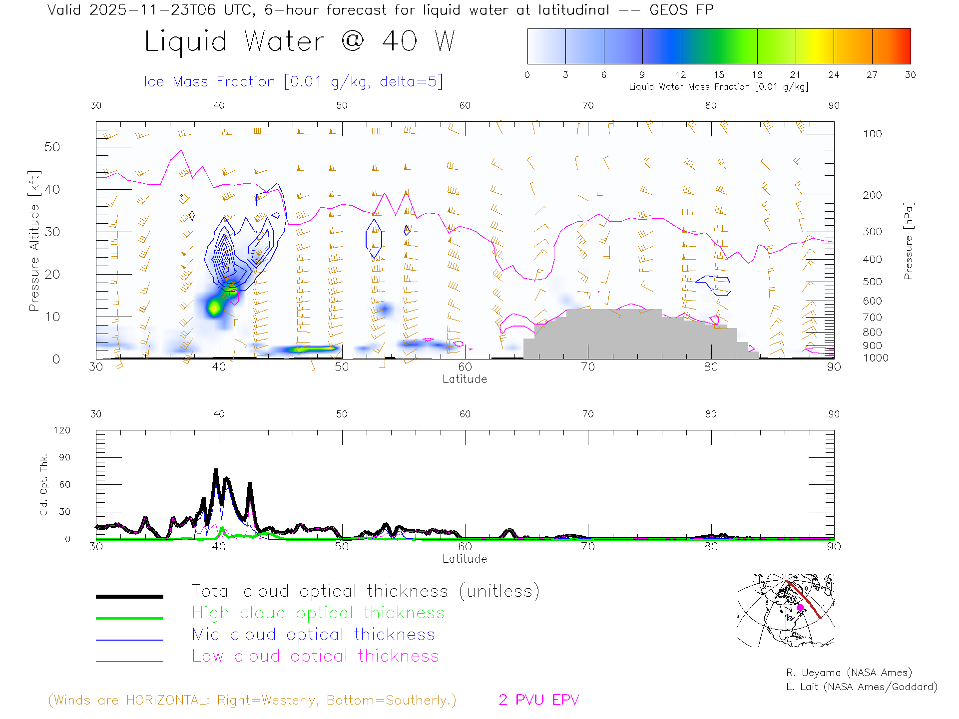GEOS Forecast Cloud Water Content X-Section (40 W)