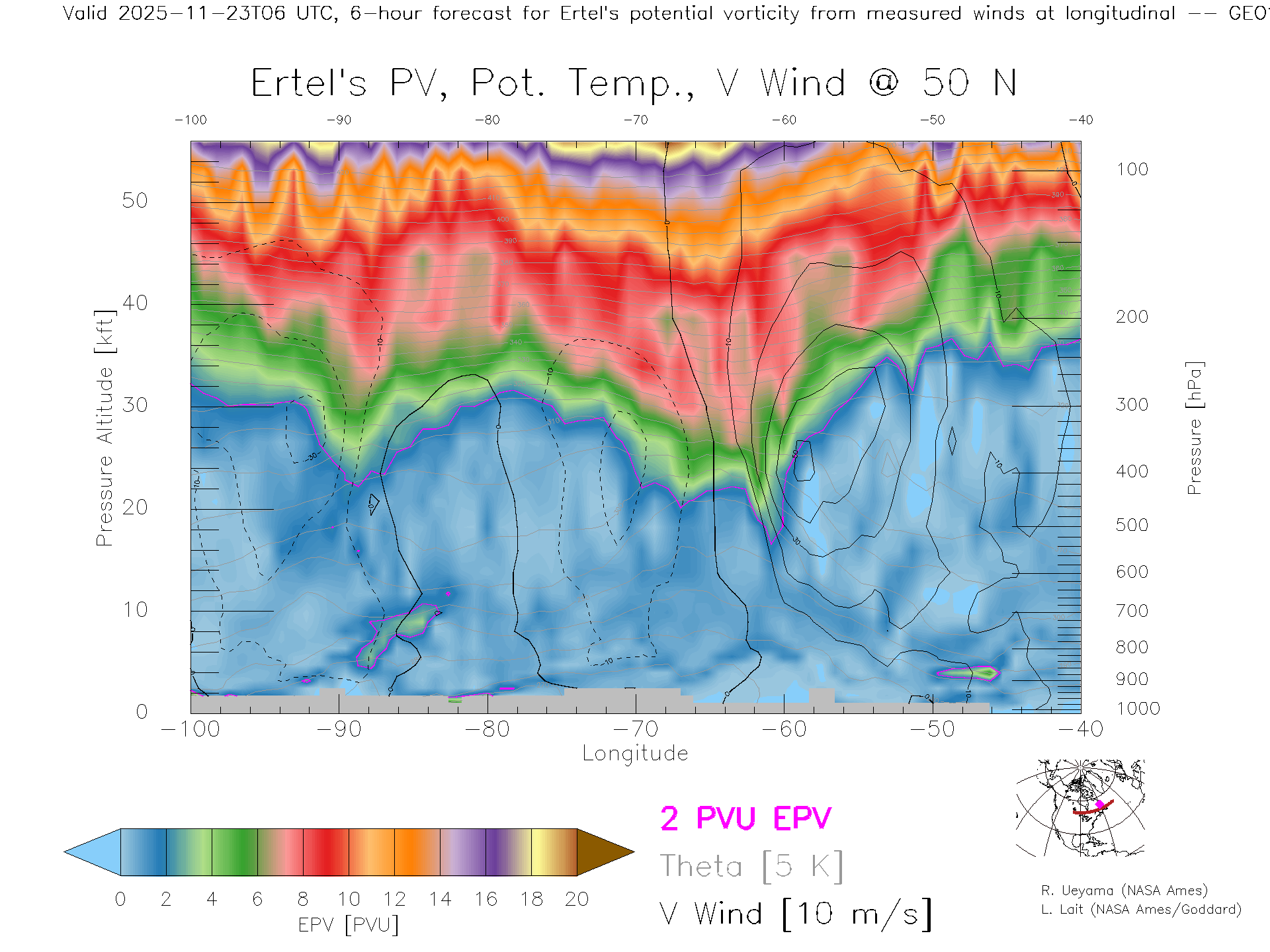 GEOS Forecast PV X-Section (50 N)