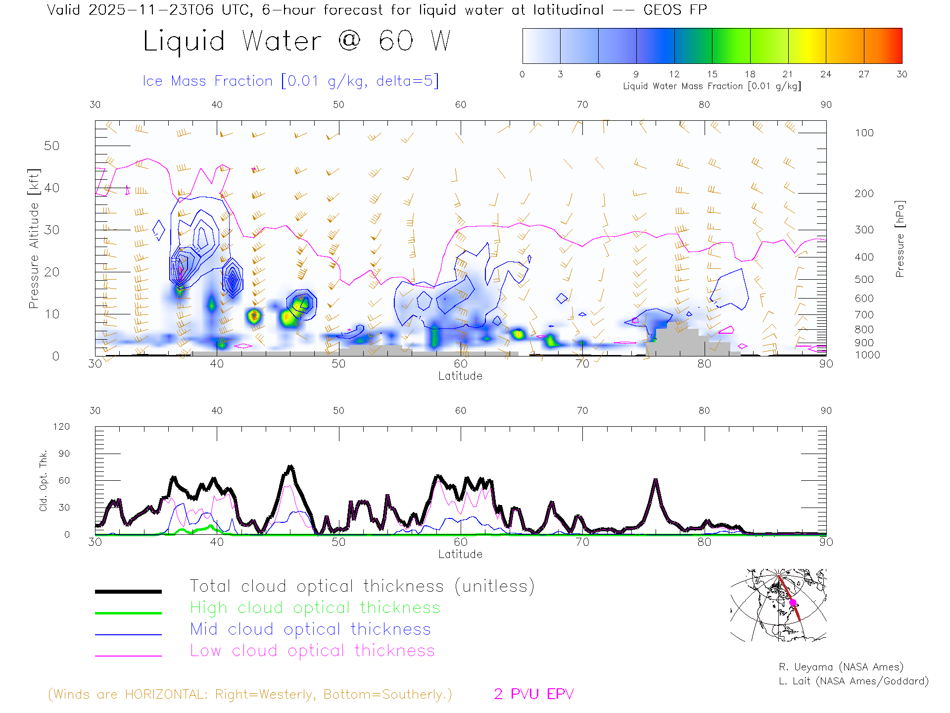 GEOS Forecast Cloud Water Content X-Section (60 W)